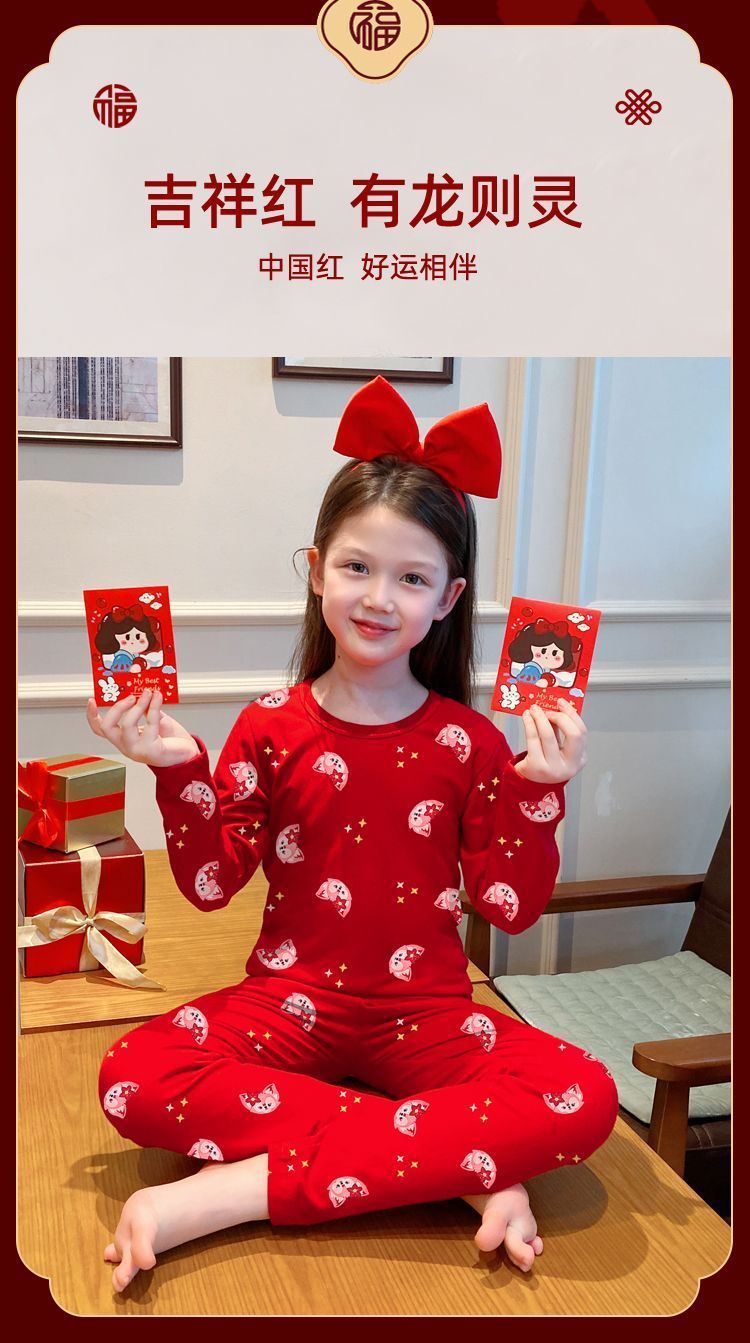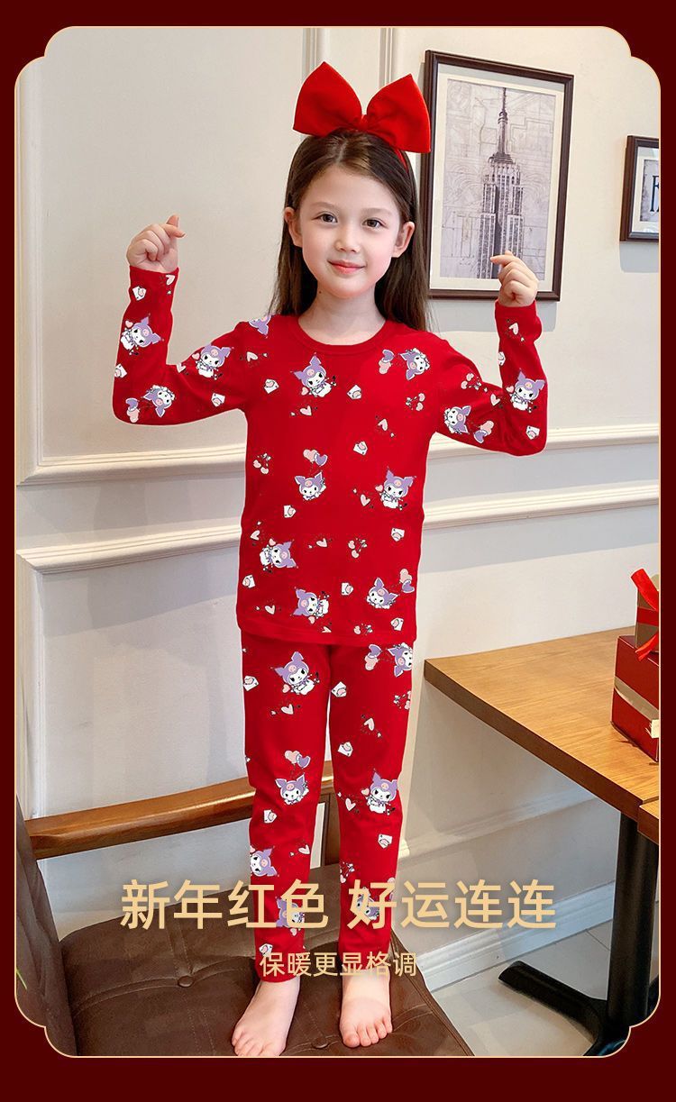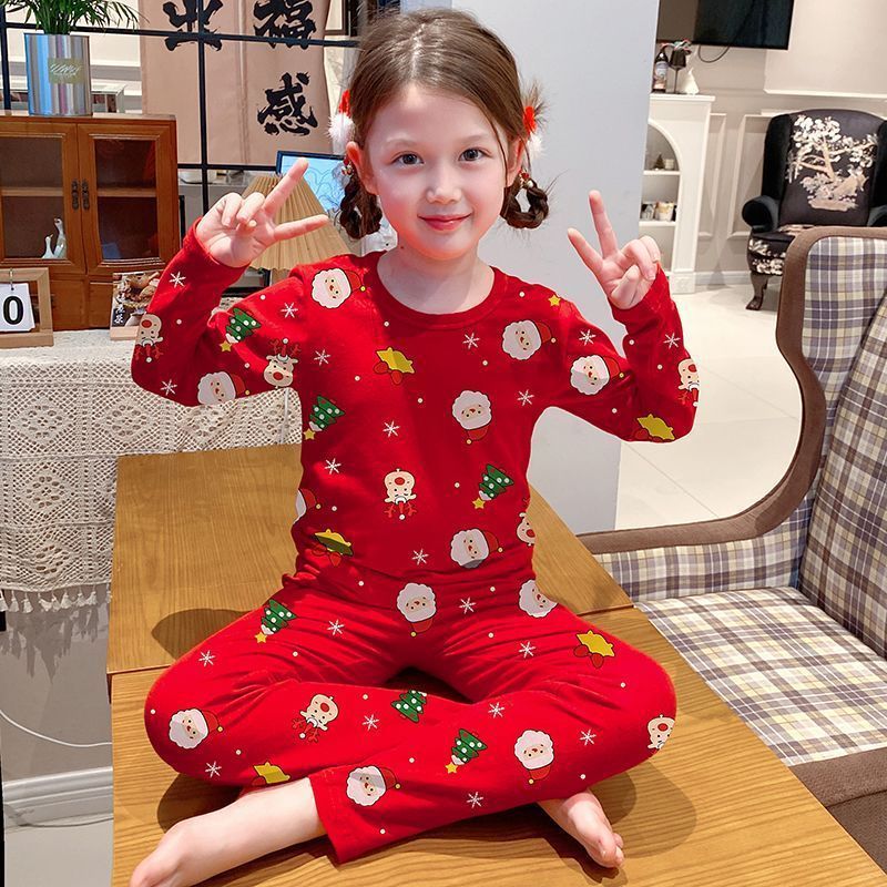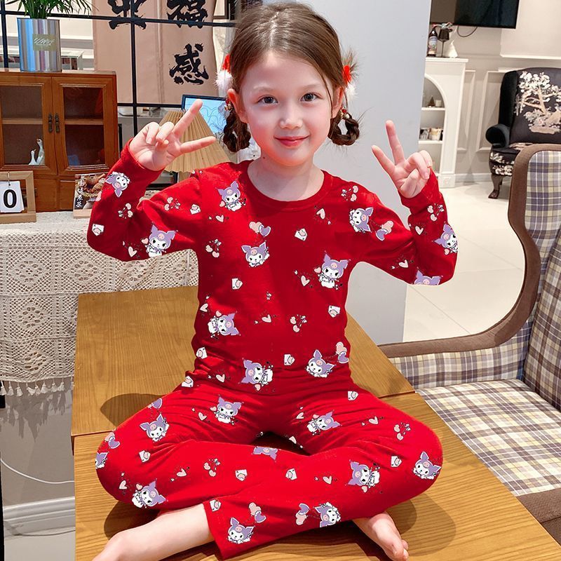 어린이 잠옷 여아 속옷 세트 붉은 가을 옷 소녀들의 연못 바지 셔츠 세트 귀여운 투피스 세트스토어 가기