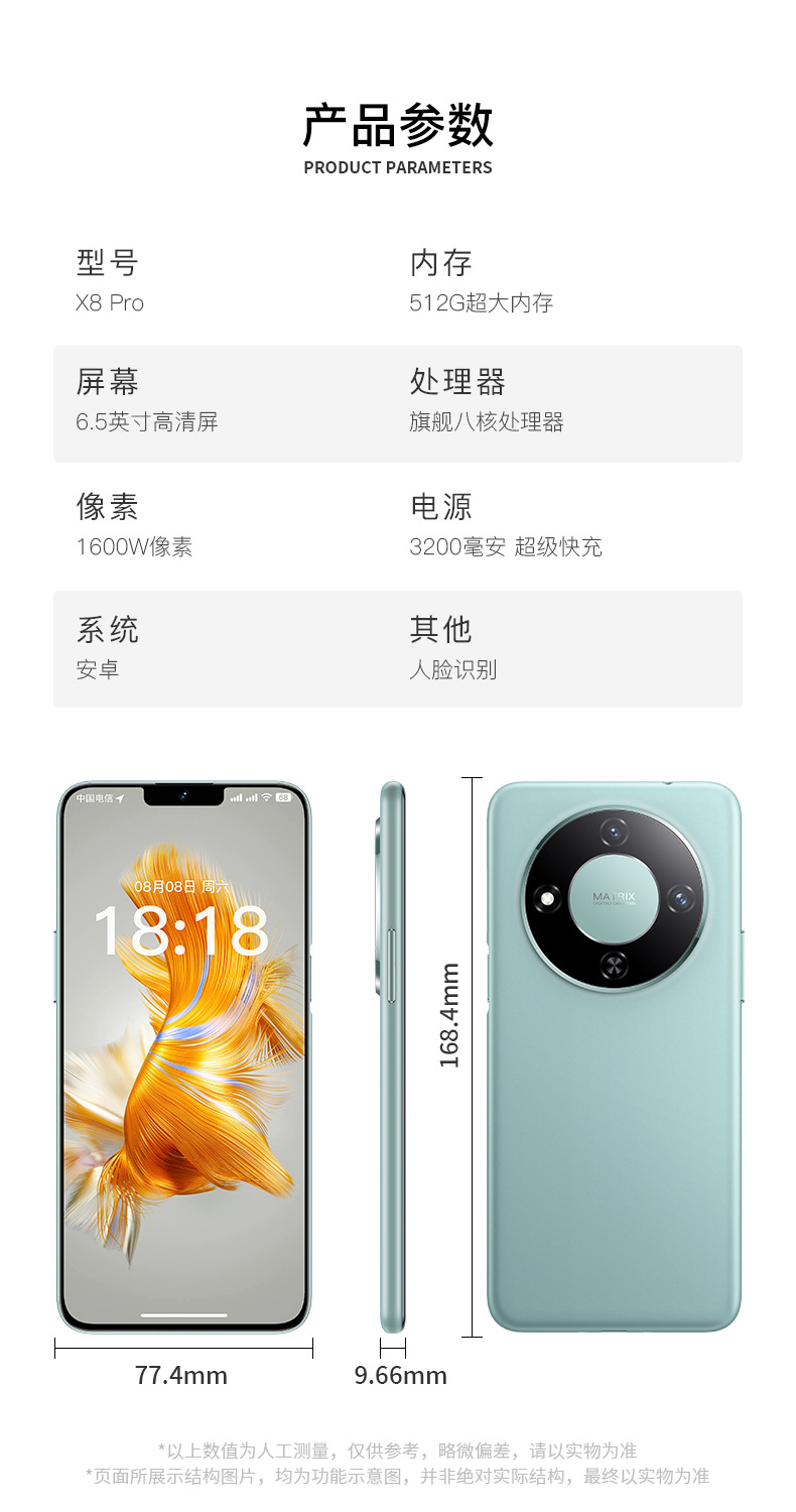 X8Pro 공장 맞춤형 스마트폰 5G 풀 네트워크 라이브 방송 인기 선물용 예비폰 풀스크린