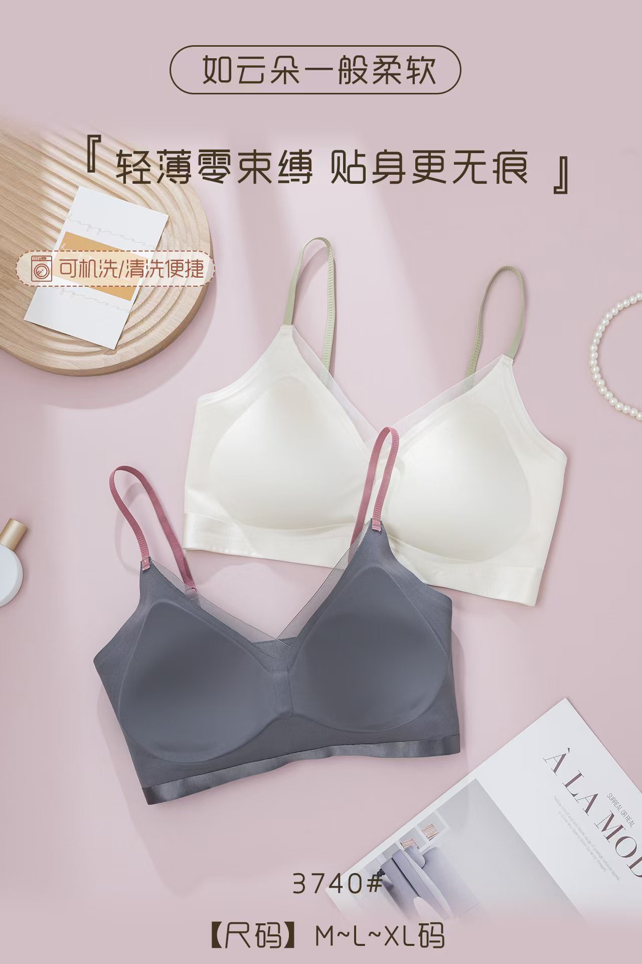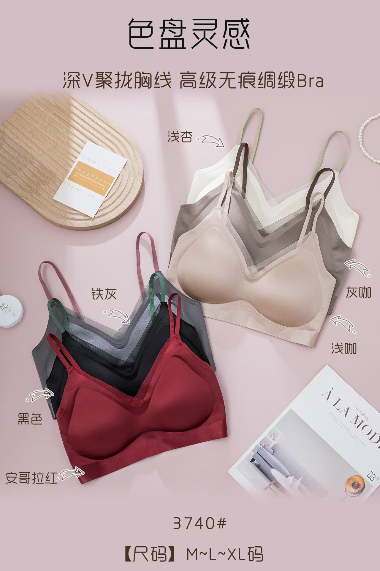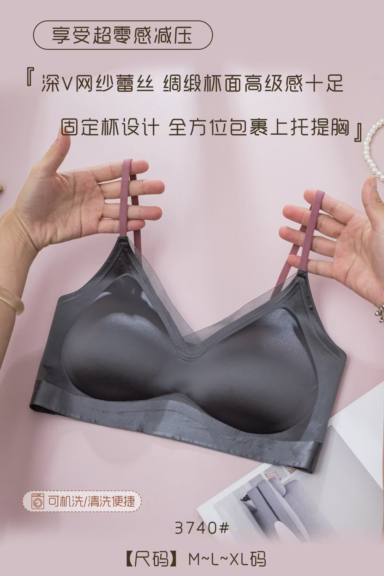 3740 원래 새로운 높은 문자 새틴 속옷 여성 조끼 버전 풀업 미끄럼 방지 브래지어