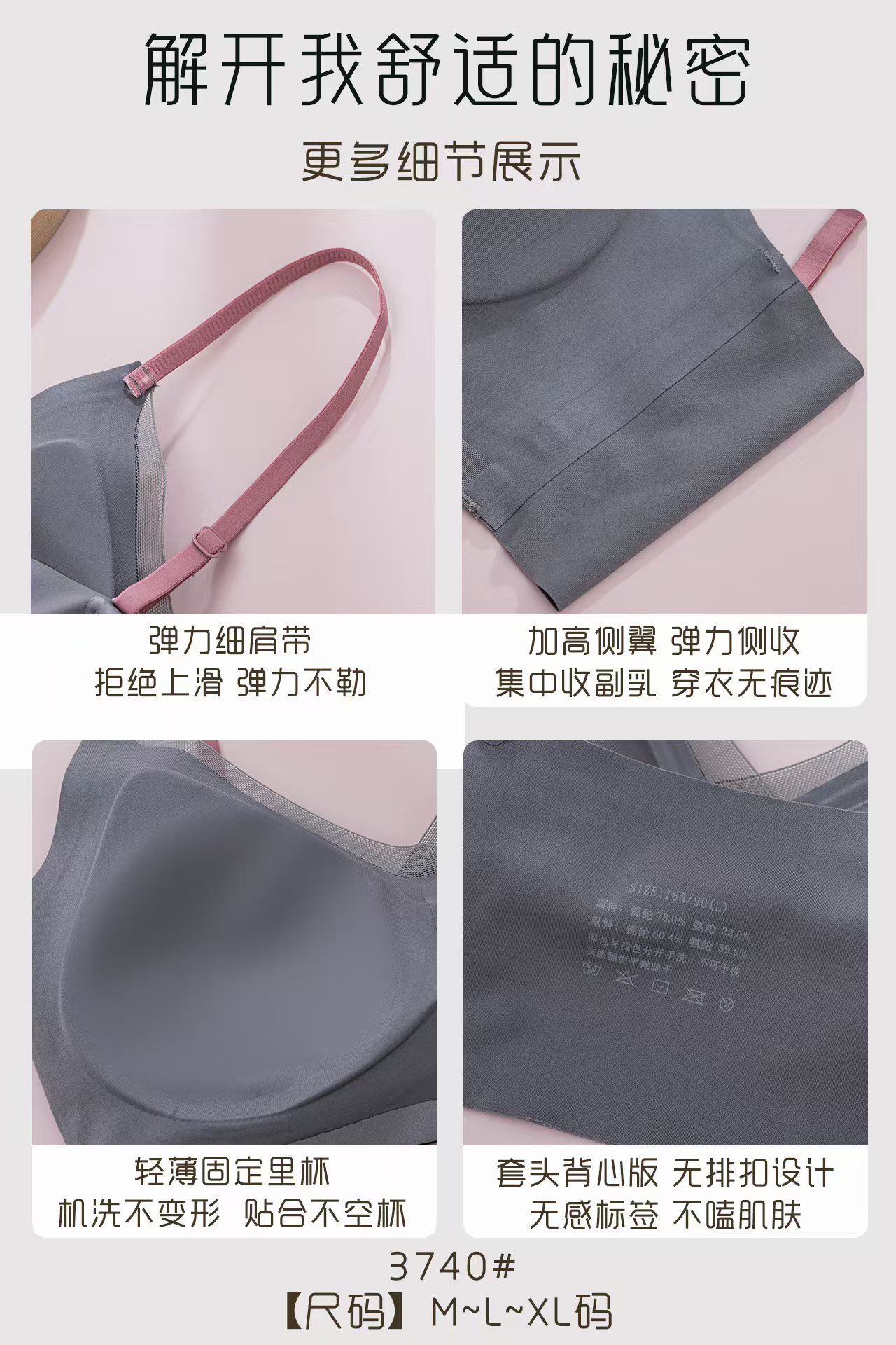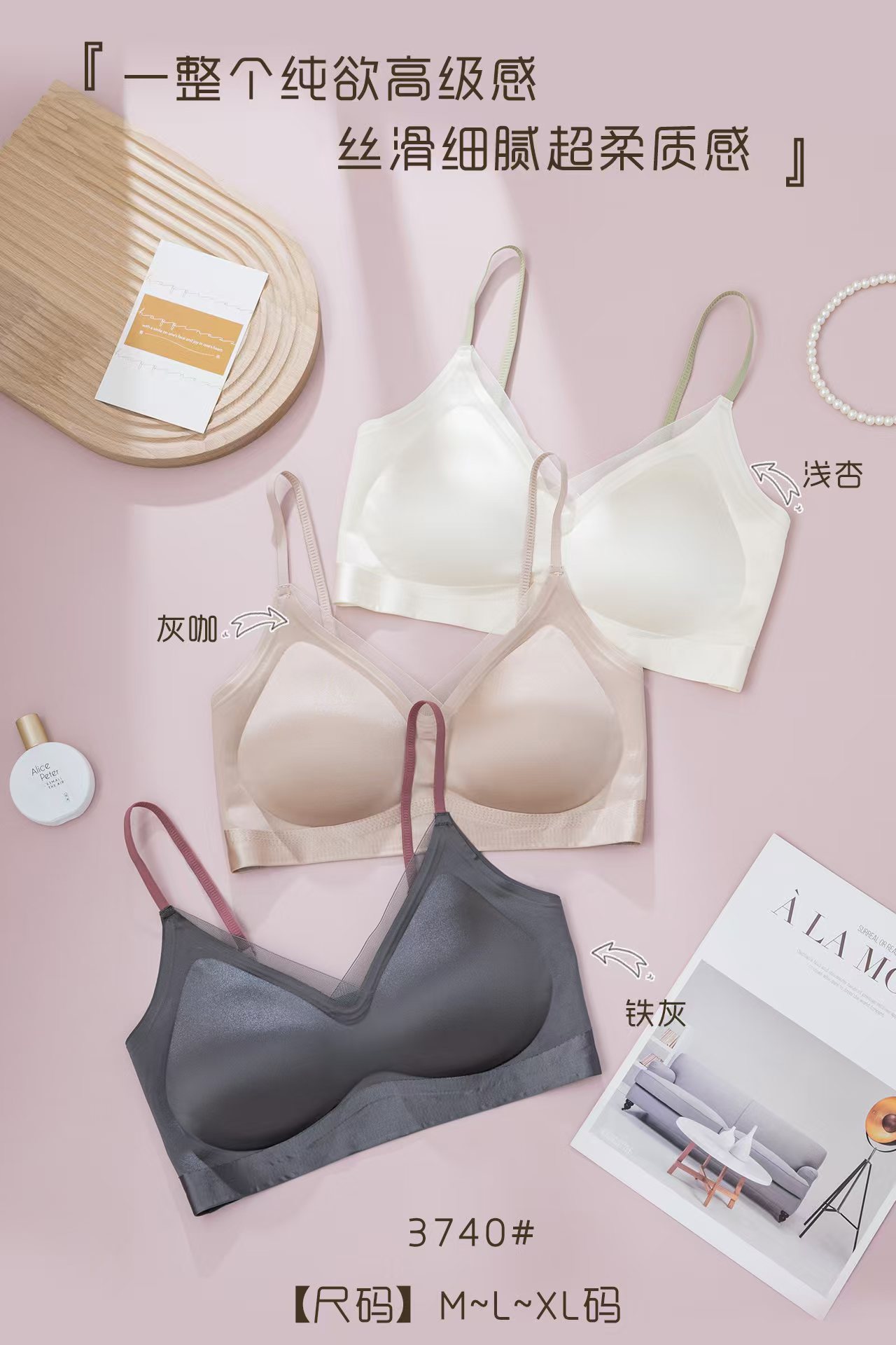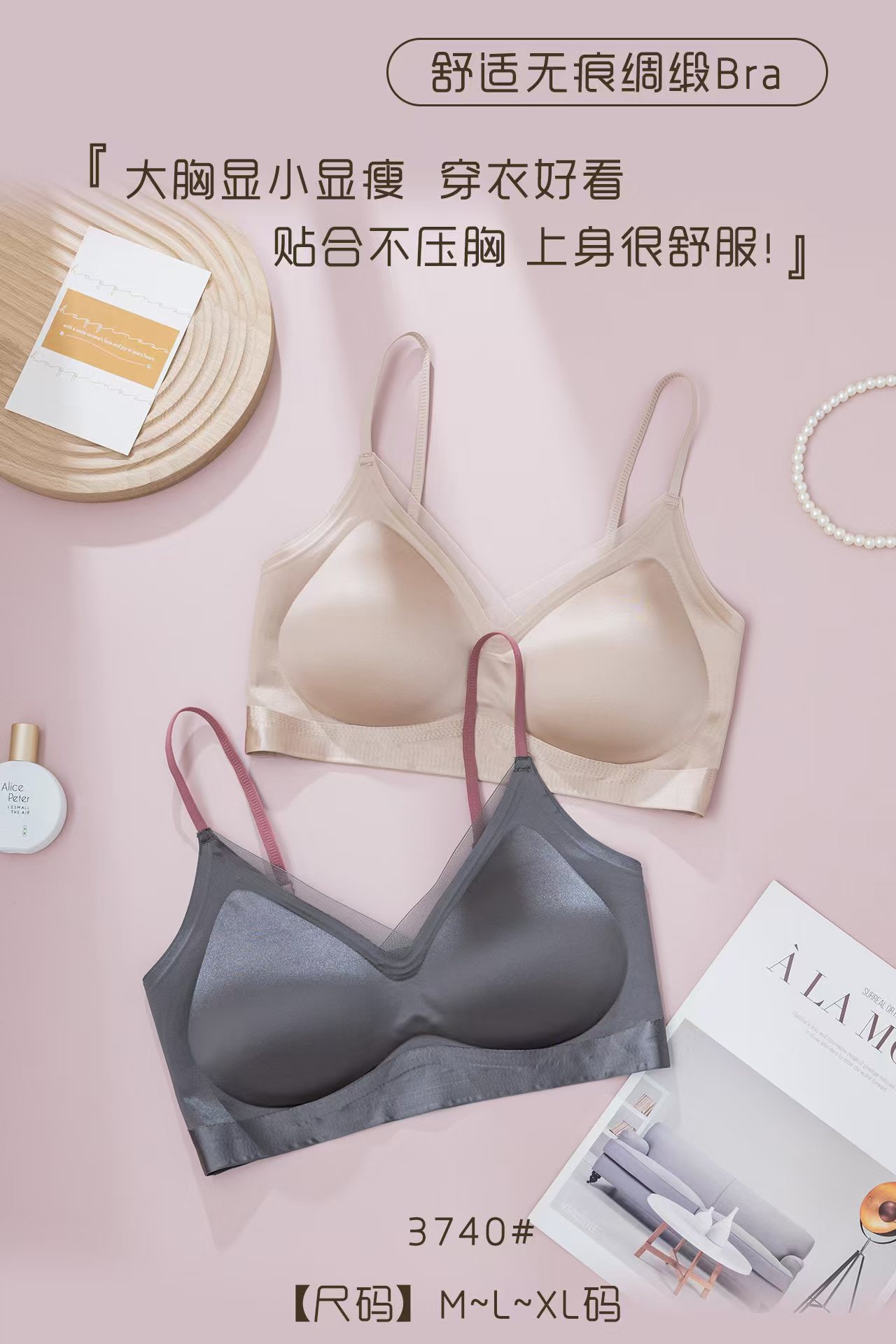 3740 원래 새로운 높은 문자 새틴 속옷 여성 조끼 버전 풀업 미끄럼 방지 브래지어스토어 가기