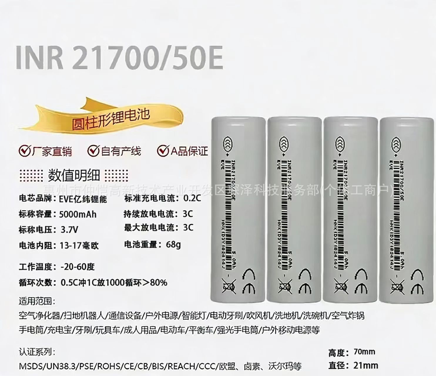 亿纬 21700 50E5000 电池的相关信息如下