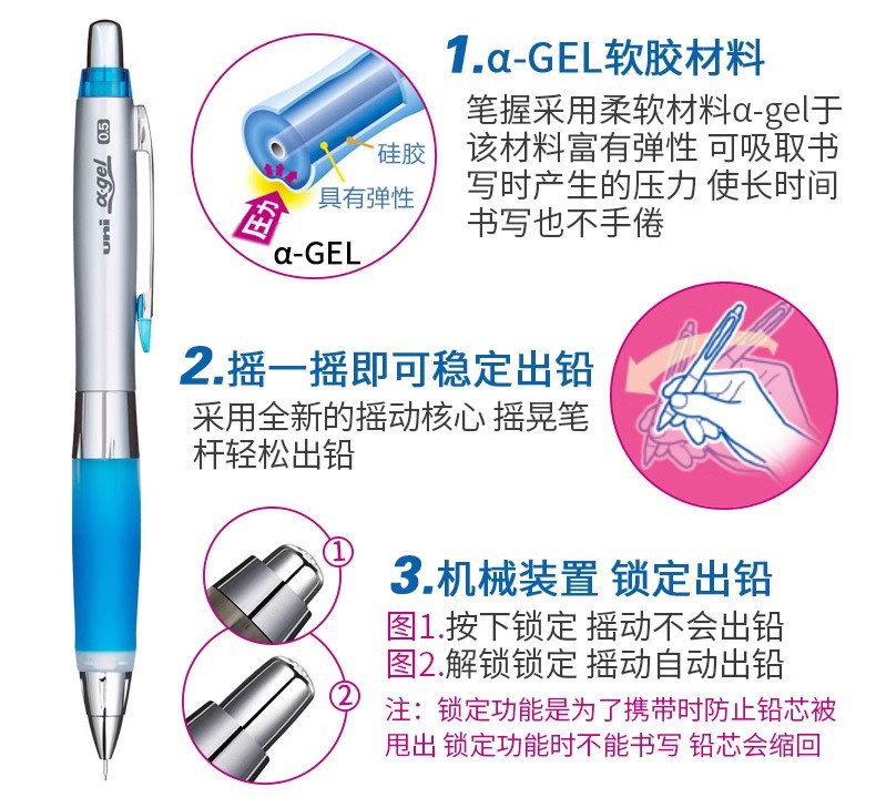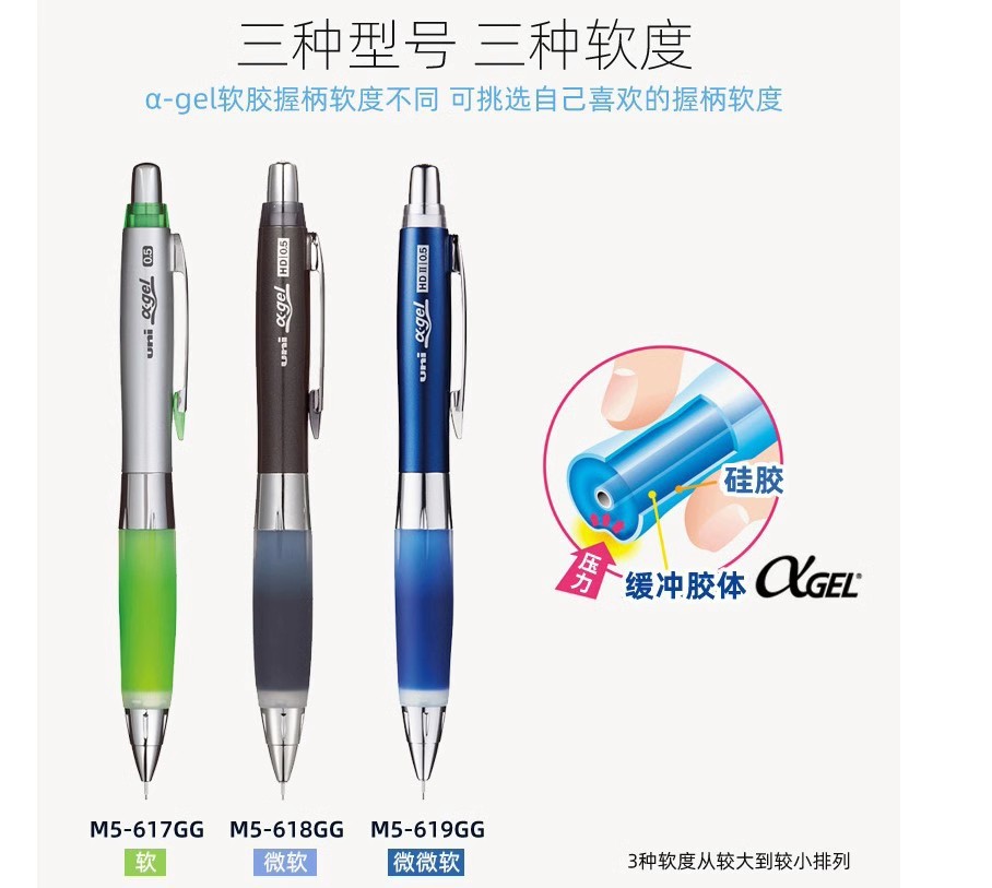 일본 UNI 미쓰비시 기계식 연필 M5-617/618 학생 쓰기 안티 피로 소프트 그립 쉐이크 리드 0.5MM스토어 가기