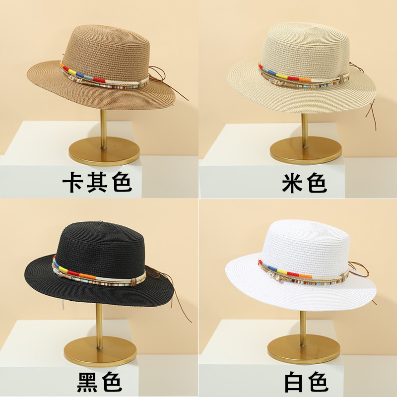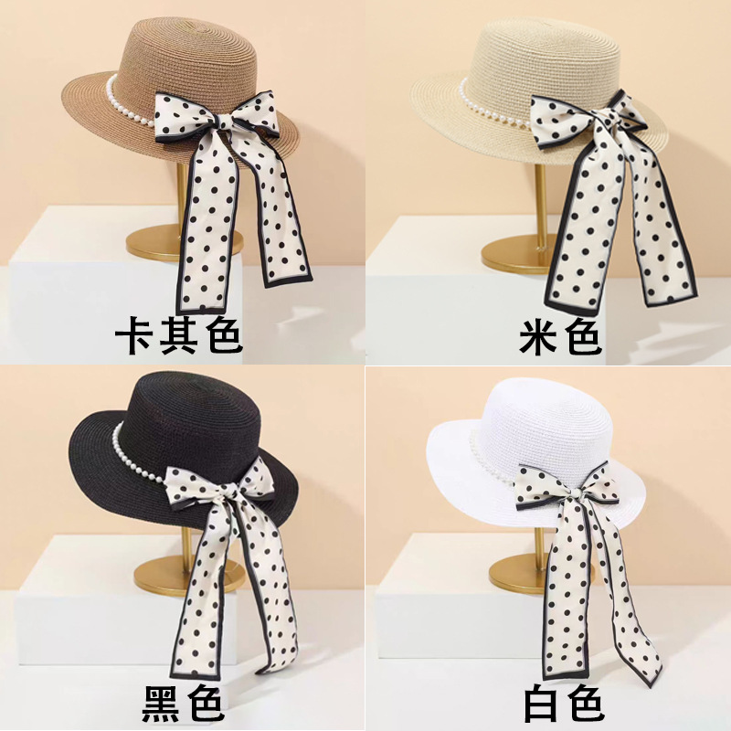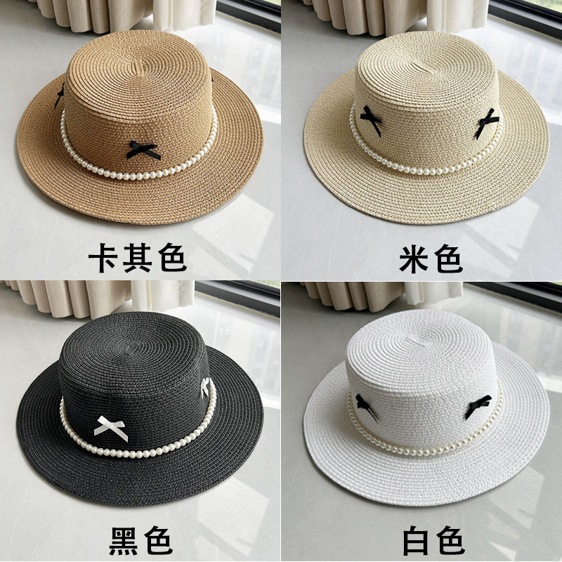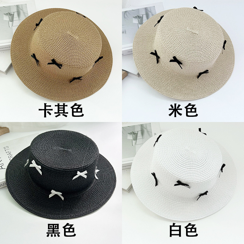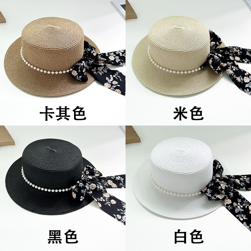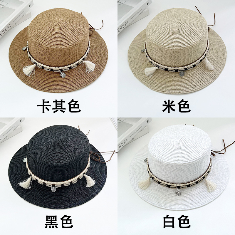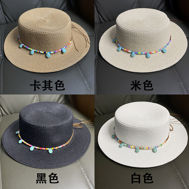 플랫 탑 밀짚 모자 여성의 프랑스 밀짚 탑 모자 2025 새로운 여름 큰 브림 햇빛 모자 해변 휴일 태양 모자