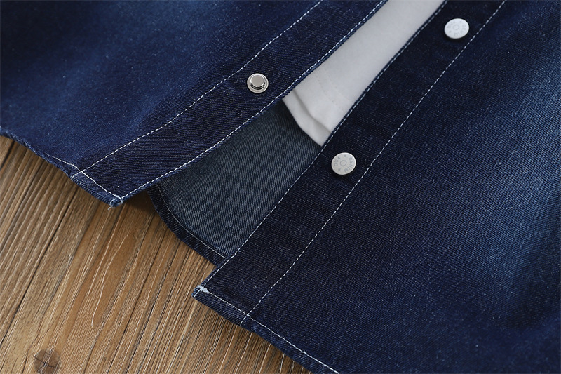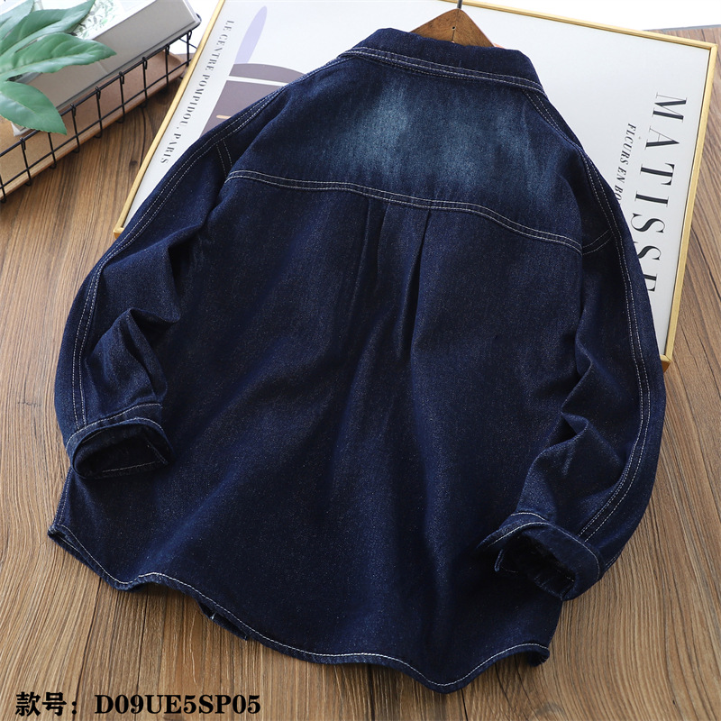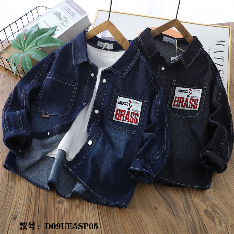 25 봄 어린이 데님 셔츠 큰 어린이 옷깃 긴 소매 편지 셔츠 대외 무역 아동복 소년 5sp05