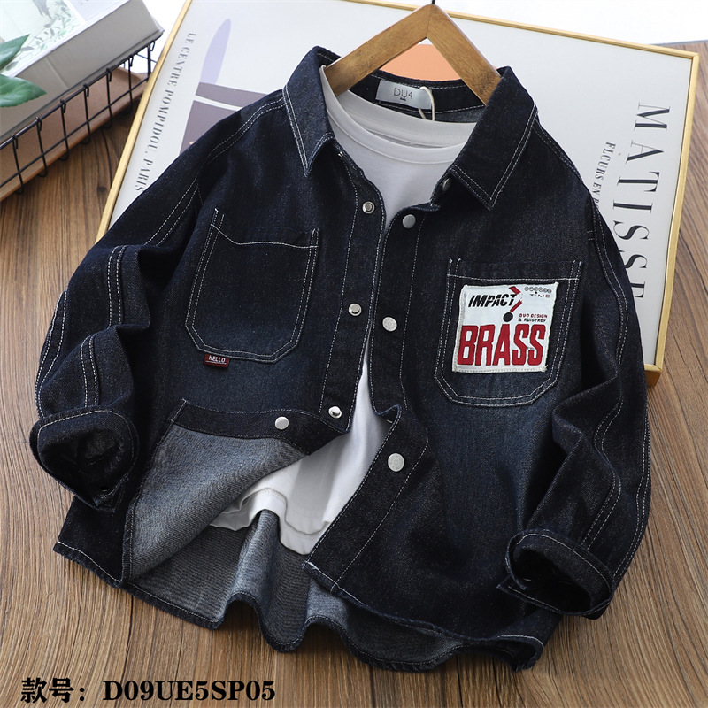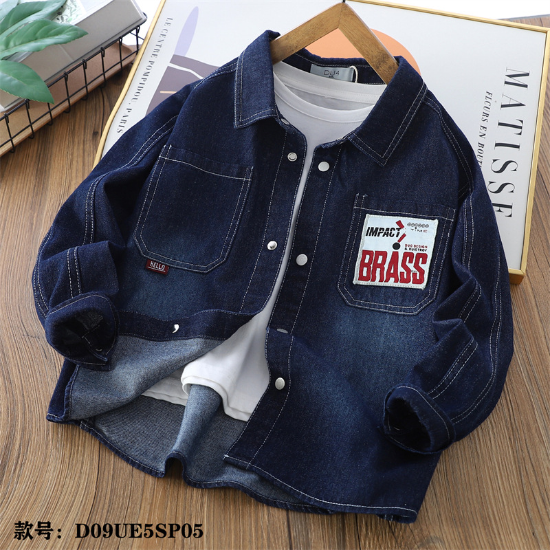 25 봄 어린이 데님 셔츠 큰 어린이 옷깃 긴 소매 편지 셔츠 대외 무역 아동복 소년 5sp05스토어 가기