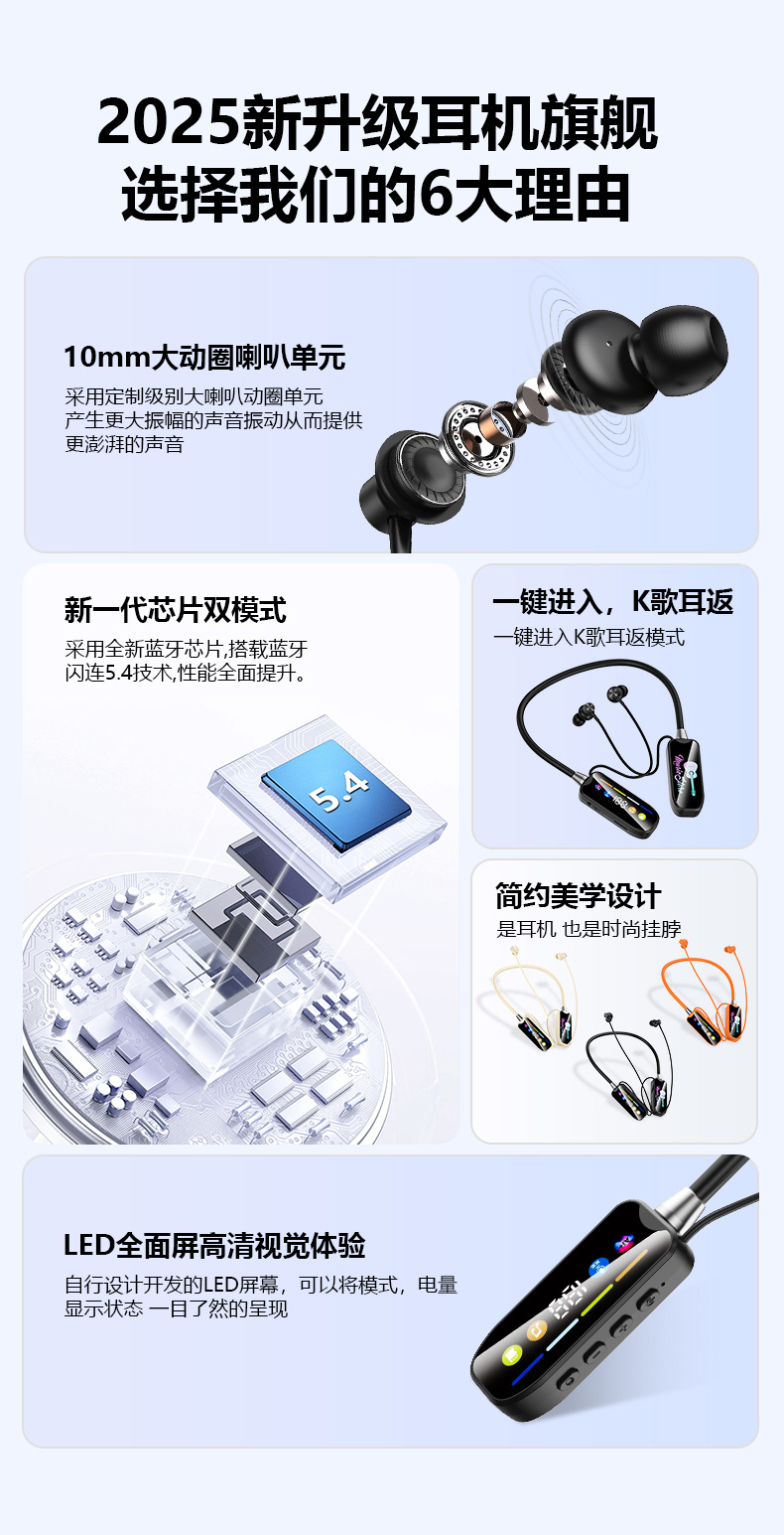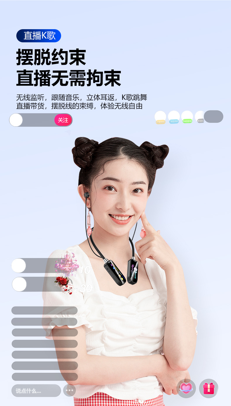 400毫安大电池,续航时间40小时以上,待机时间达1个月。厂家直销清仓促销,带耳返监听可K歌录歌直播,语音导航,多种音效切换。功能强大 ,支持定制LOGO。货源稳定性价比高,全网支持比质比价!