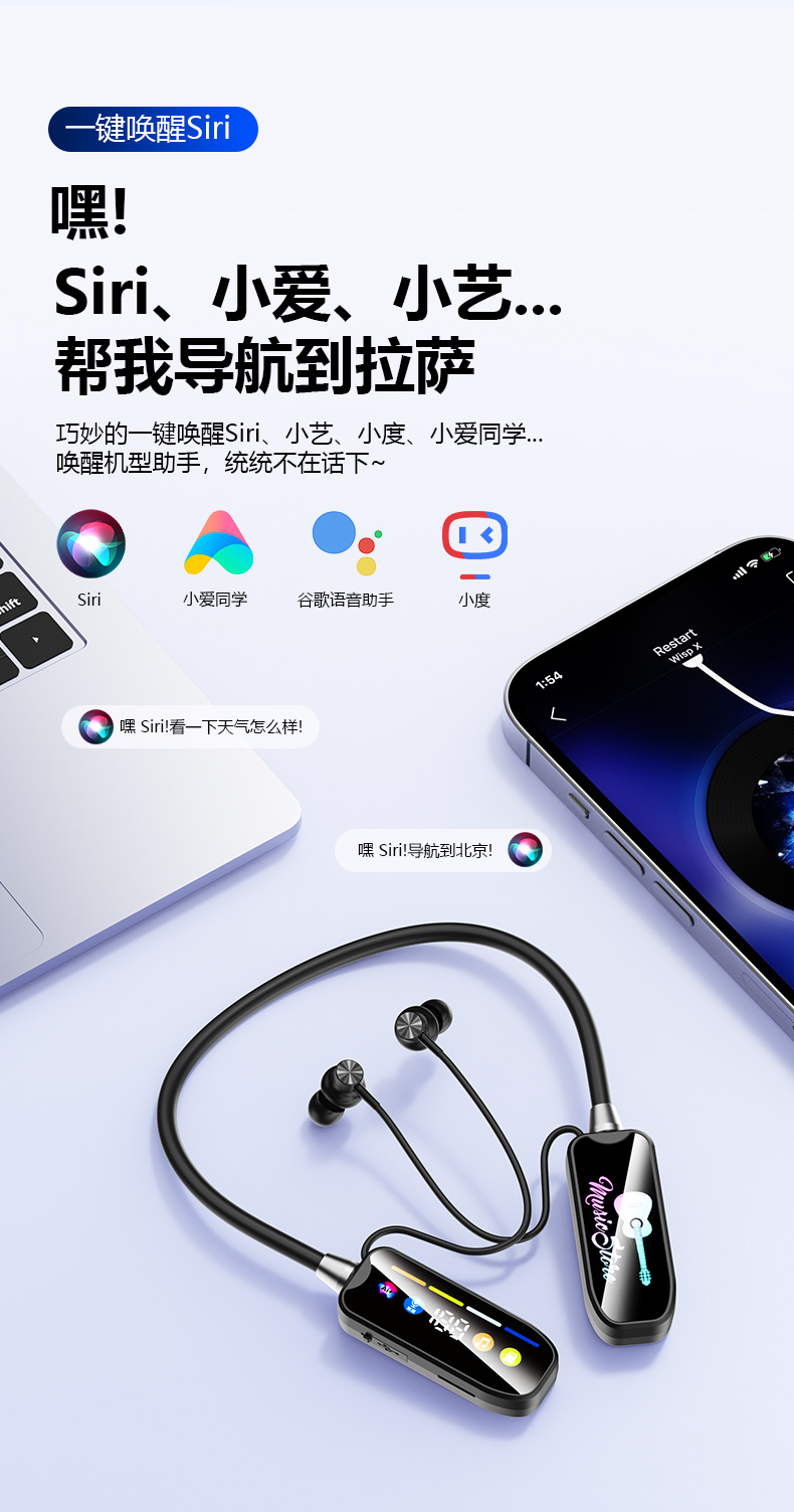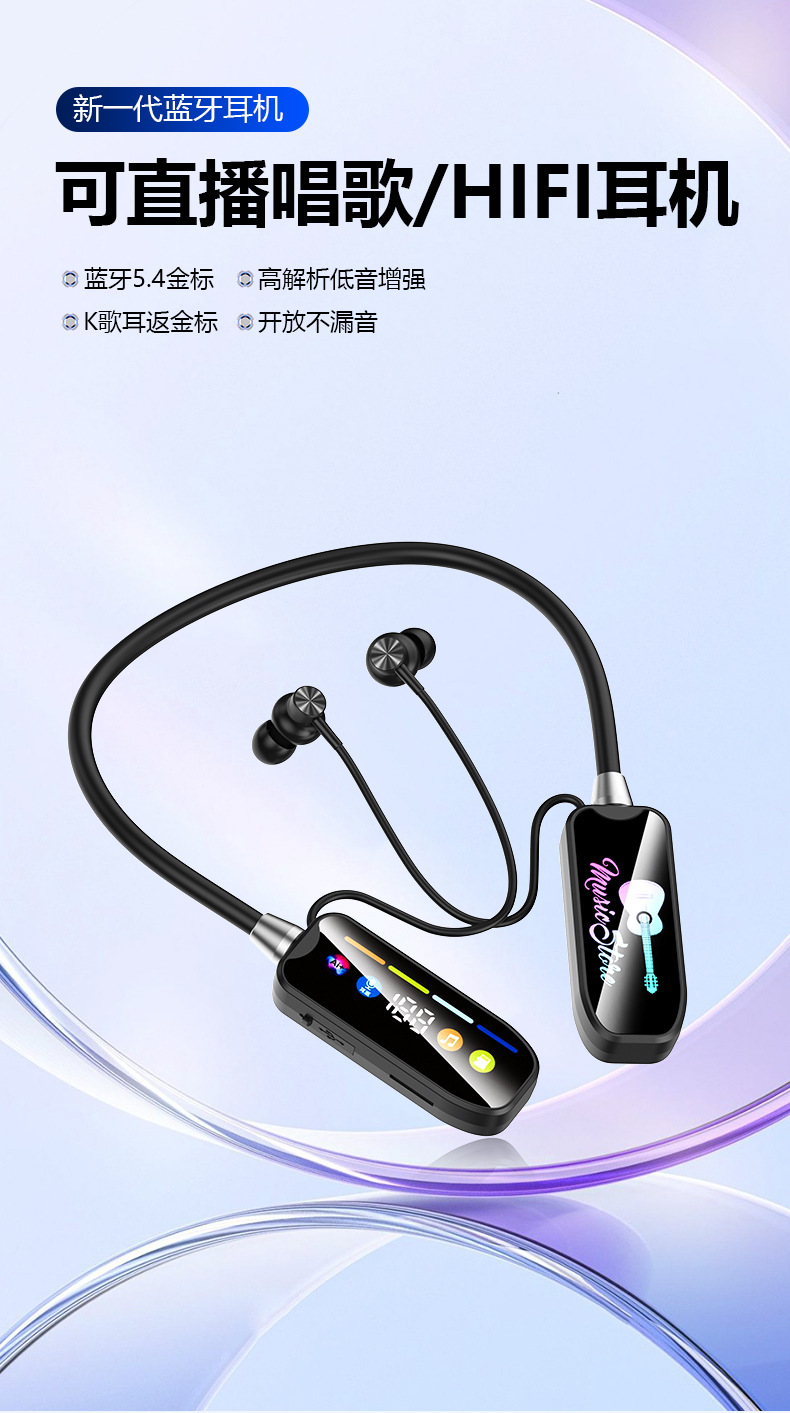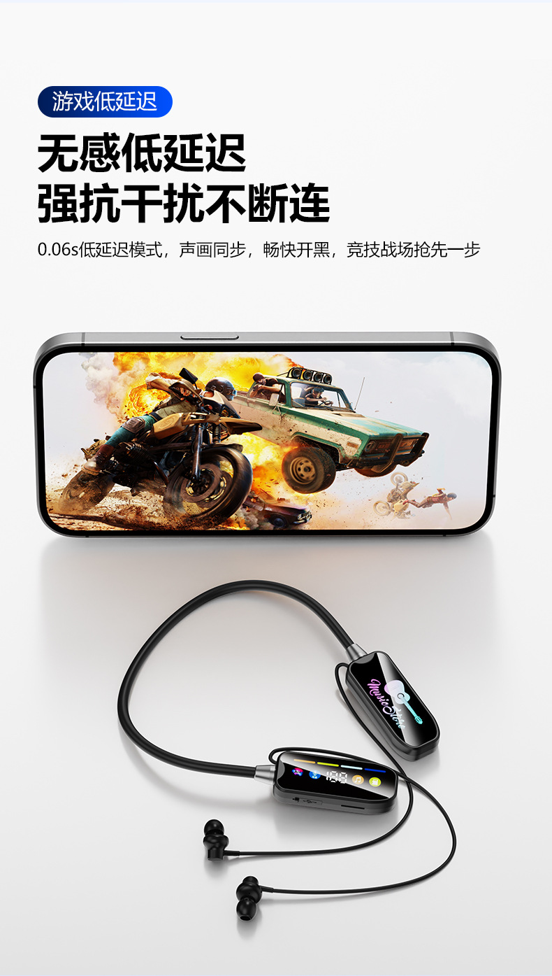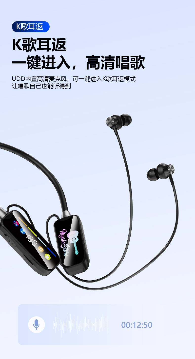 새로운 무선 교수형 목 블루투스 헤드셋 슈퍼 긴 내구성 스포츠 라이브 카드 귀 반환 디지털 K-노래 사운드 카드