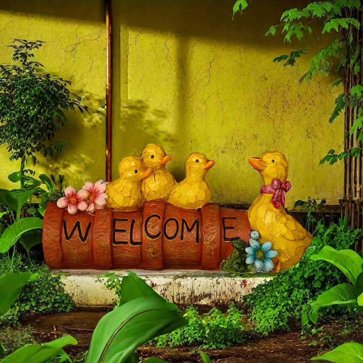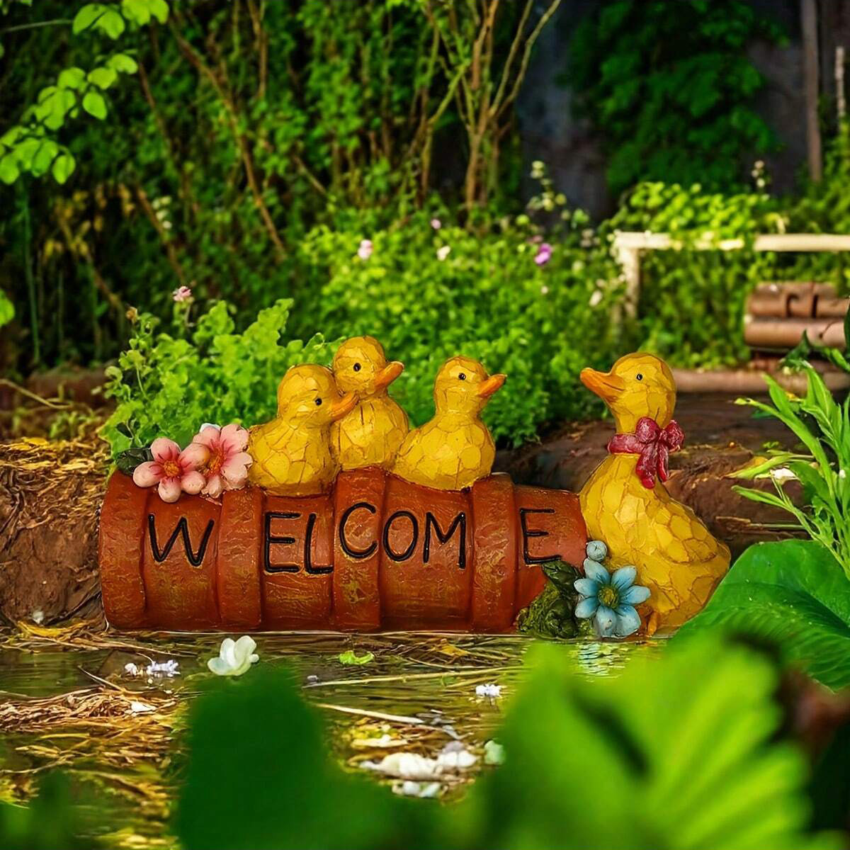 어머니 오리와 그 세 아기 오리 정원 조각 동상 환영 로고 정원 잔디 홈 장식