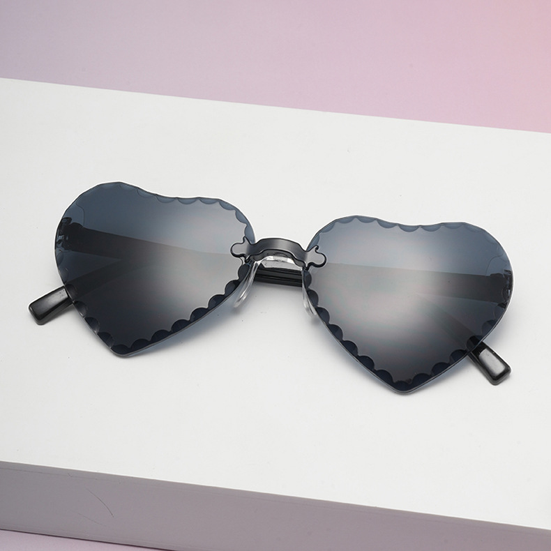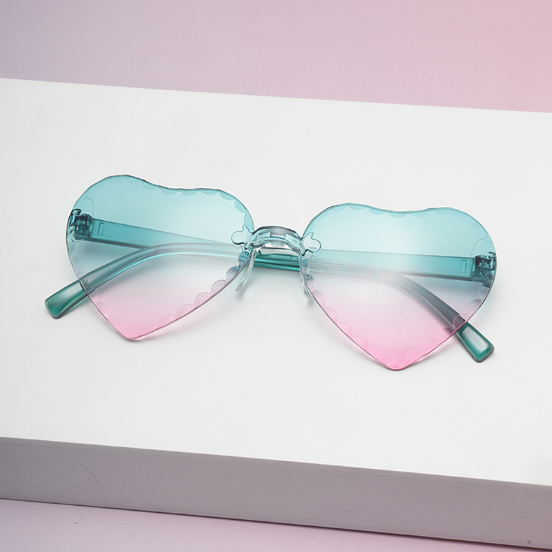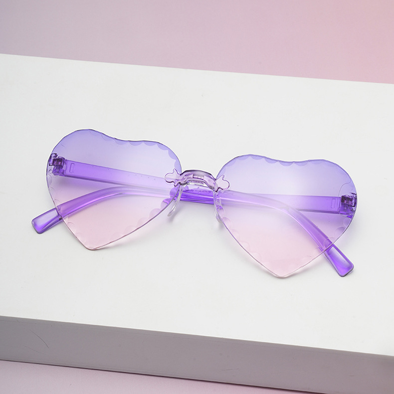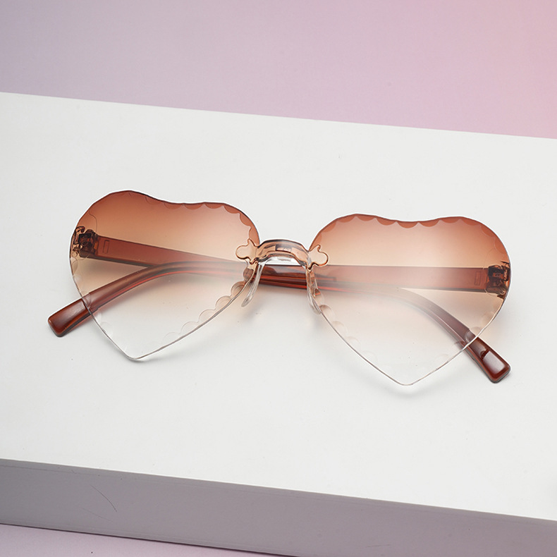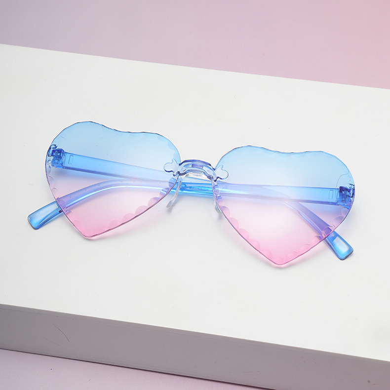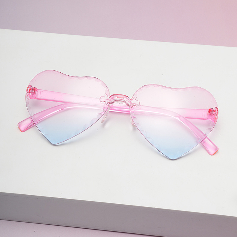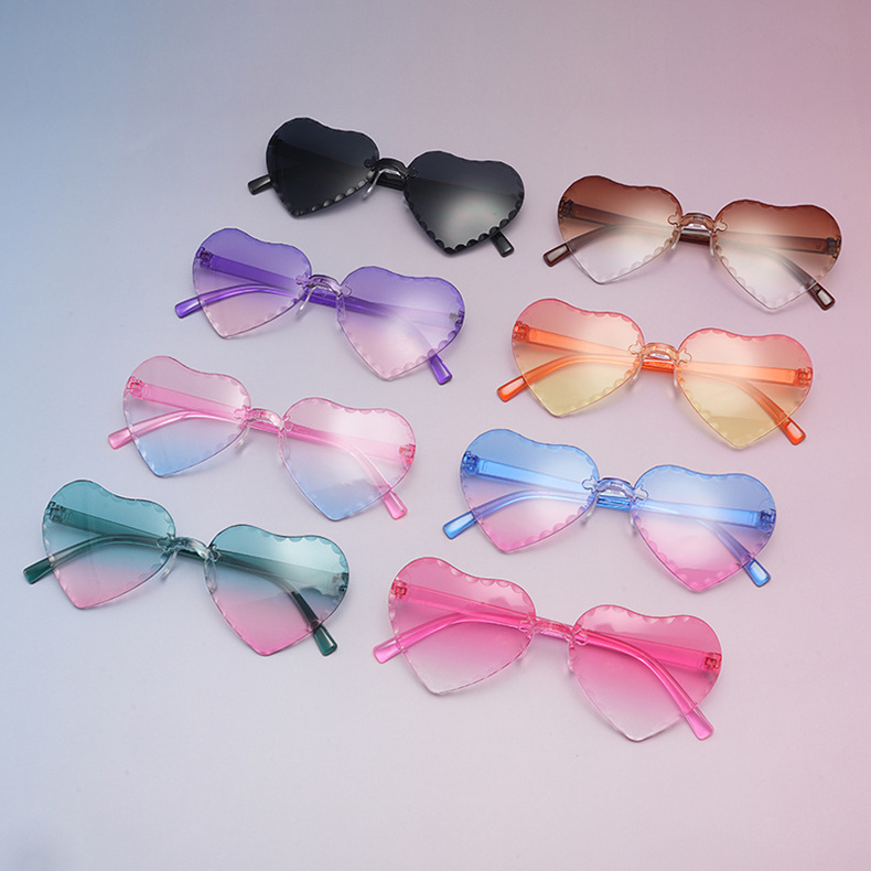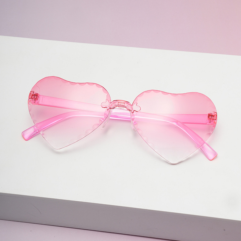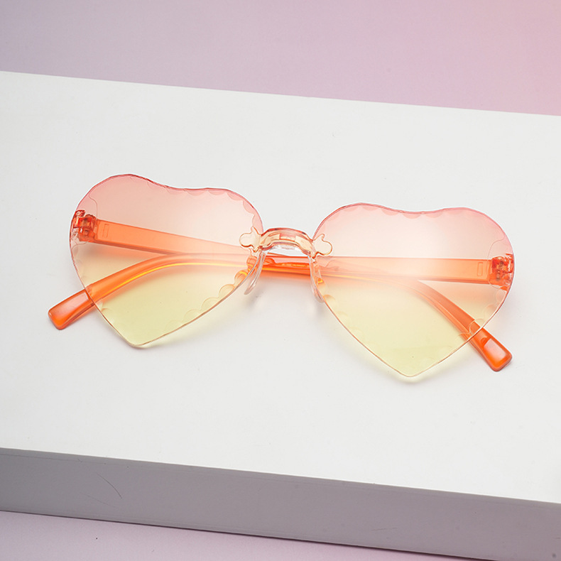 귀여운 아기 사랑 레이스 선글라스 젤리 컬러 프레임없는 하트 모양의 안경 유니섹스 어린이 복숭아 심장 선글라스
