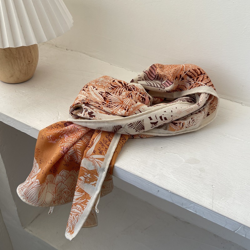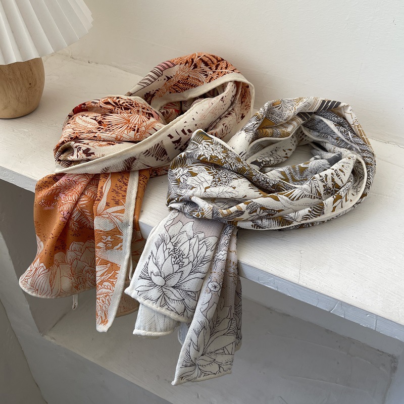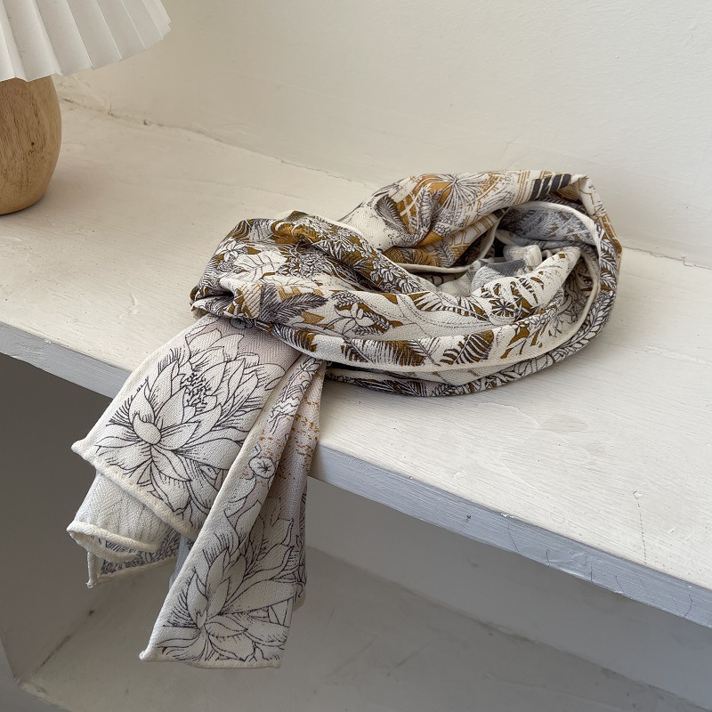 일본식 우아한 베이지 헤링본 모방 실크 울 대형 롱 스카프 따뜻한 벨벳 스카프 이중 사용 목도리 봄스토어 가기