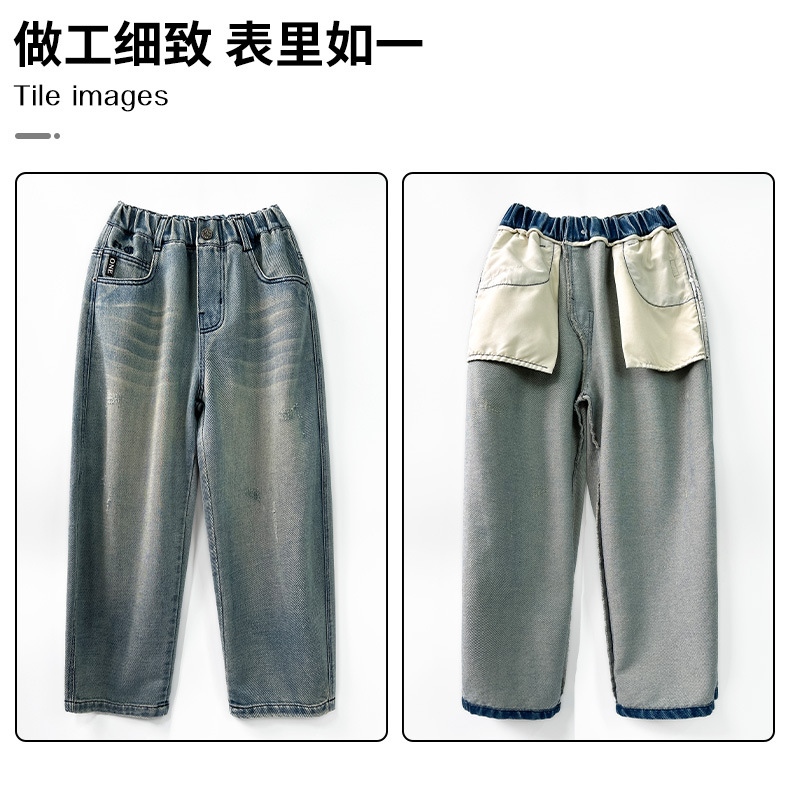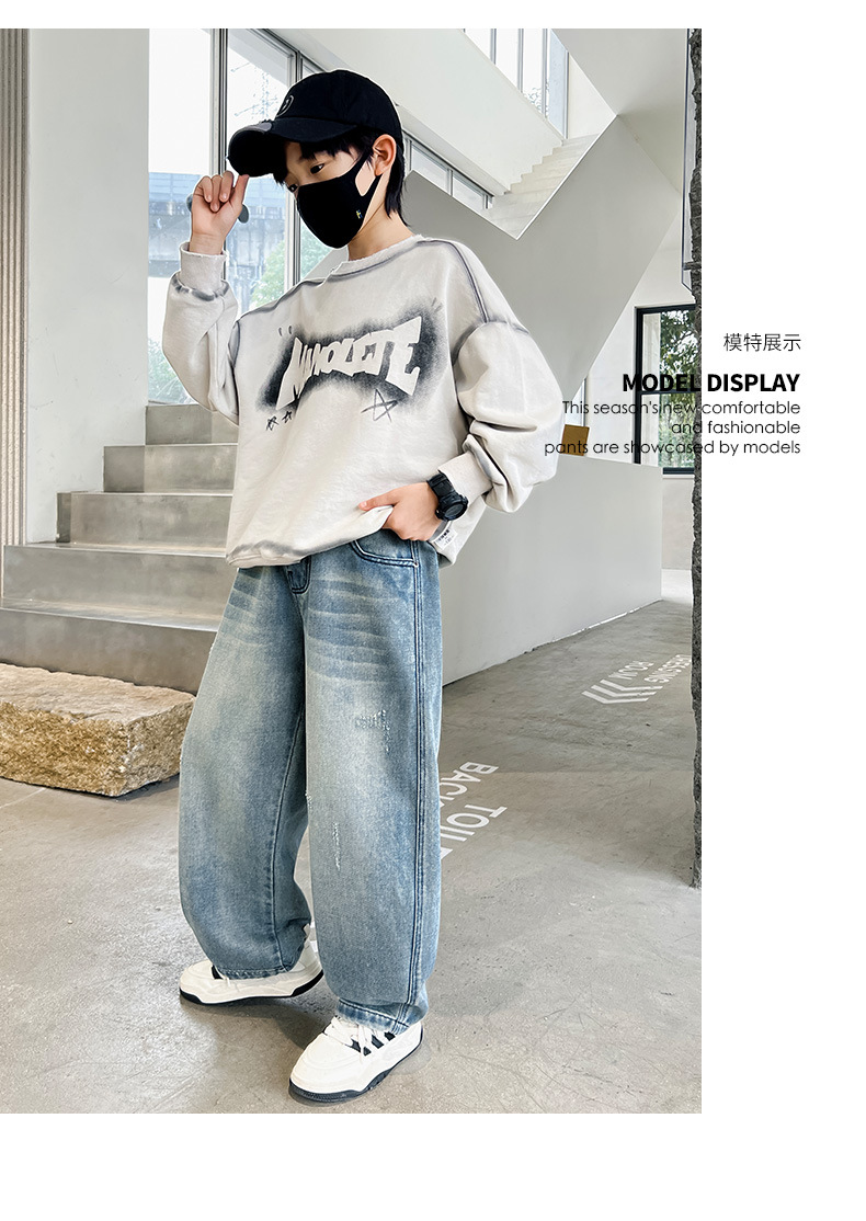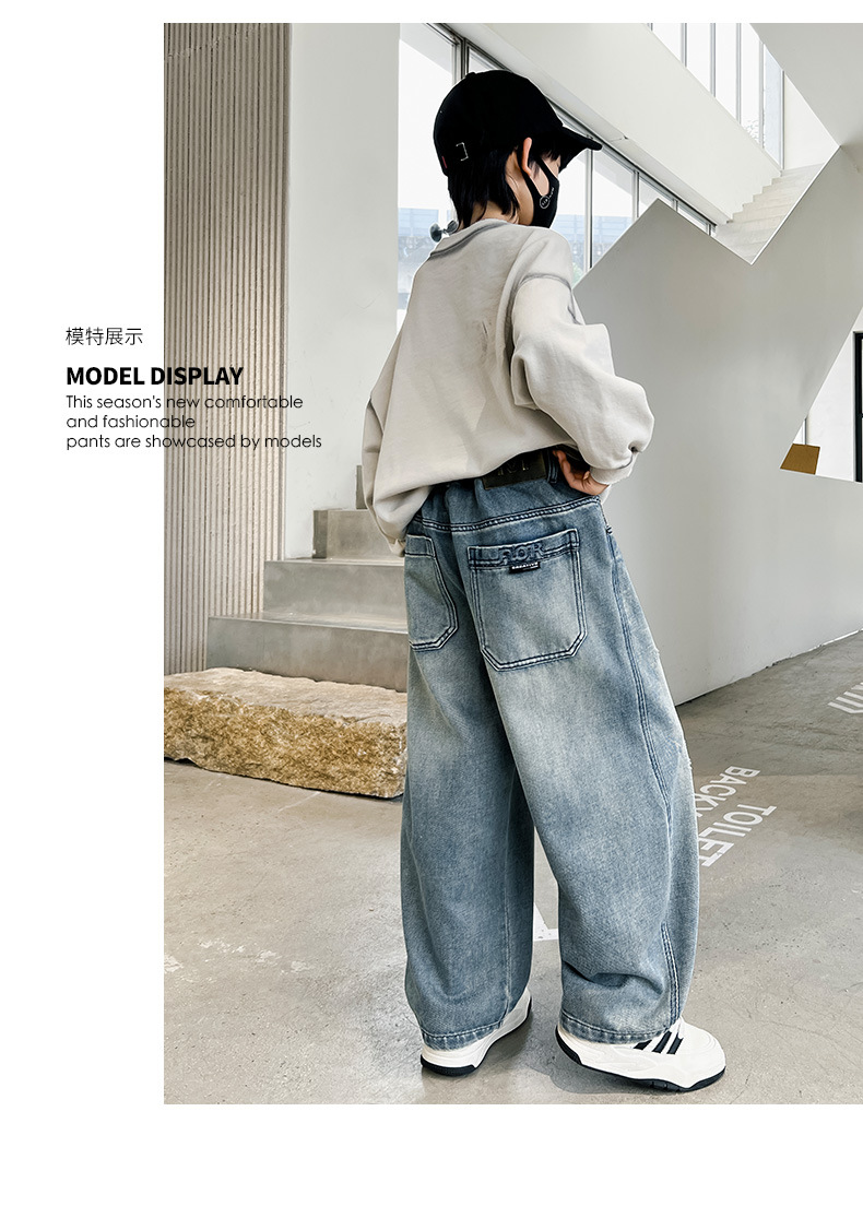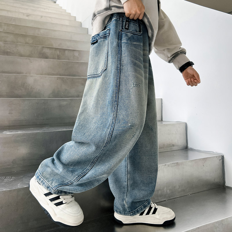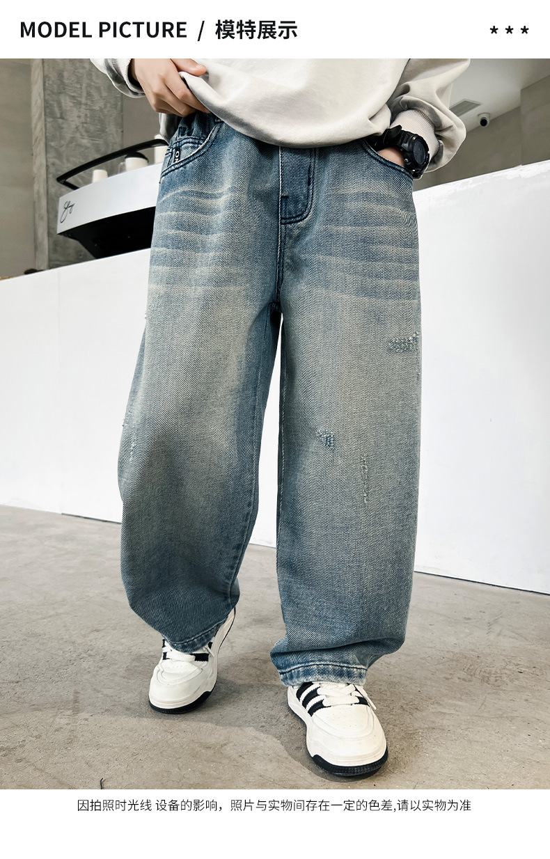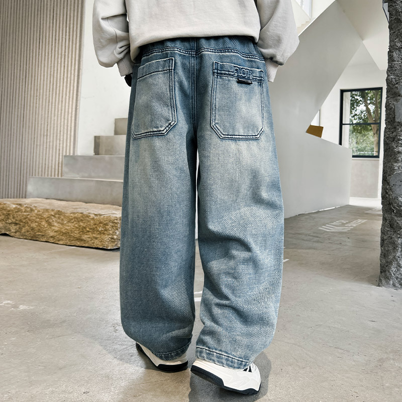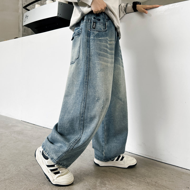 봄 소년 청바지 봄 새로운 어린이 의류 어린이 큰 소년 십대 밝은 색 느슨한 트렌디 한 국경 바지스토어 가기