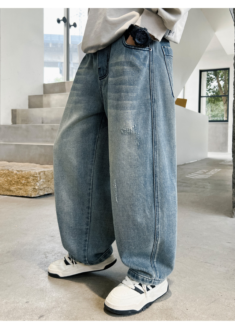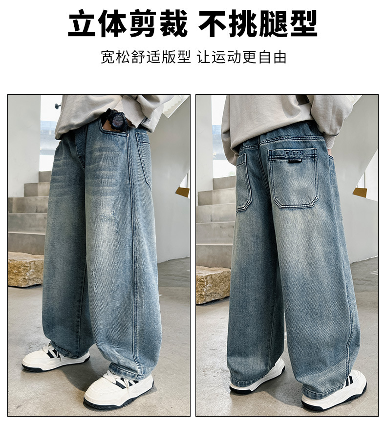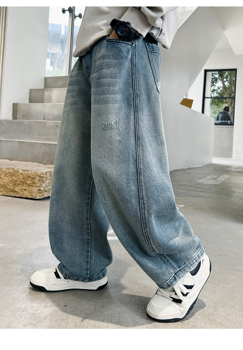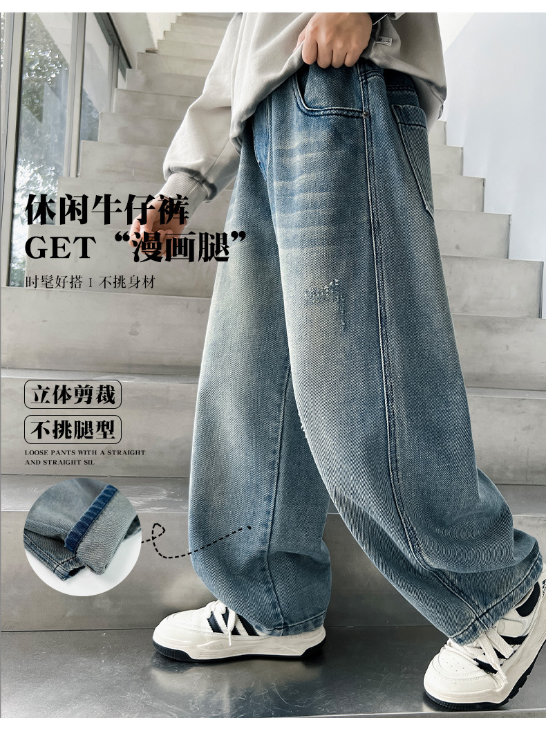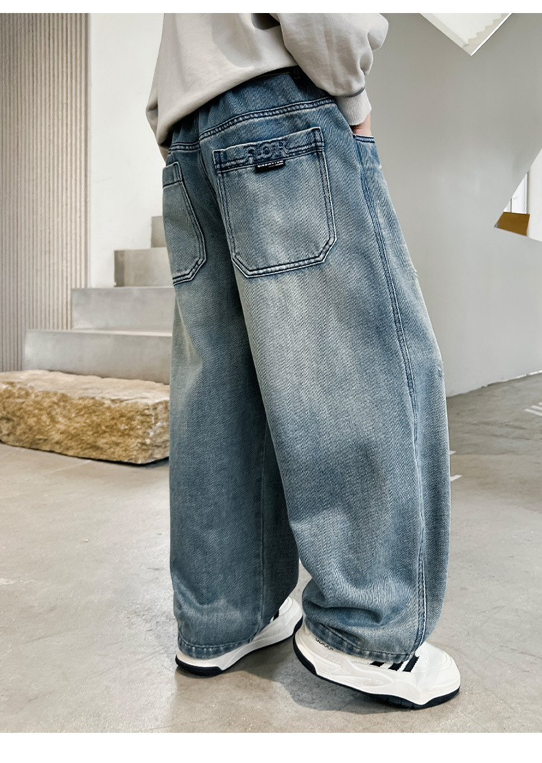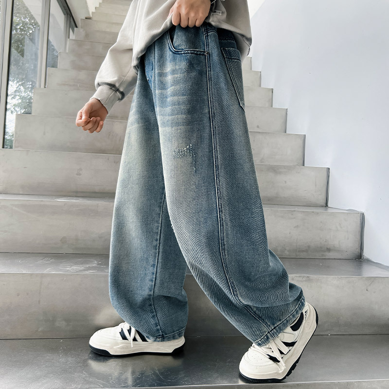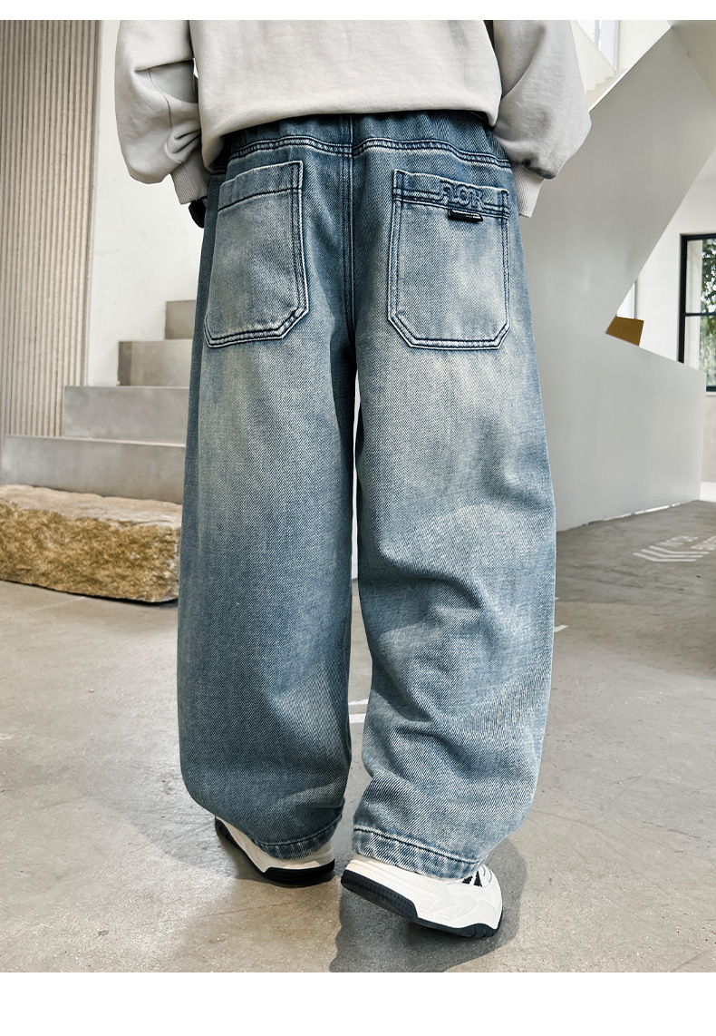 봄 소년 청바지 봄 새로운 어린이 의류 어린이 큰 소년 십대 밝은 색 느슨한 트렌디 한 국경 바지스토어 가기