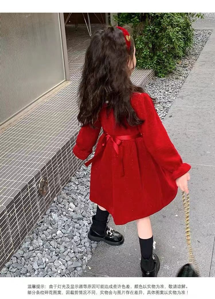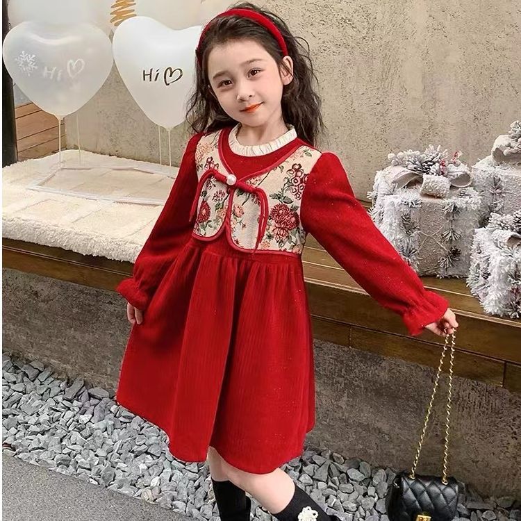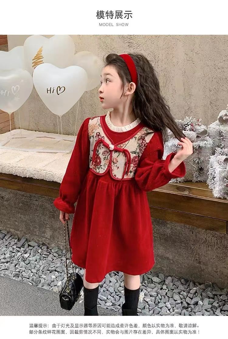새해 전야 원피스 소녀 원피스 가을과 겨울 어린이 기모 크리스마스 원피스 소녀 샤넬 스타일 공주 원피스 아기 원피스