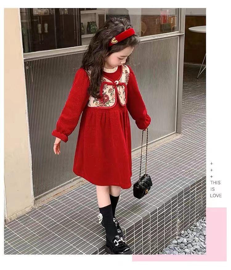 새해 전야 원피스 소녀 원피스 가을과 겨울 어린이 기모 크리스마스 원피스 소녀 샤넬 스타일 공주 원피스 아기 원피스스토어 가기