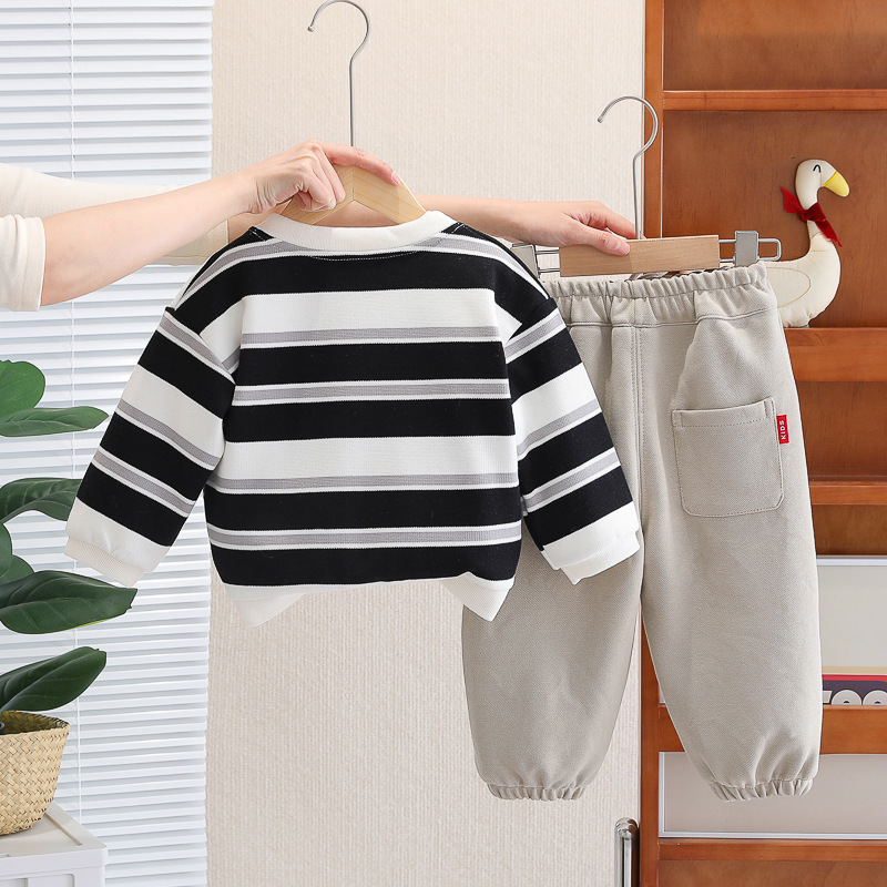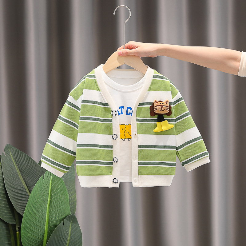 아기 소녀의 서양식 줄무늬 카디건 재킷 3 종 세트 도매 1 년 반 소년 스포츠웨어 어린이 캐주얼 바지