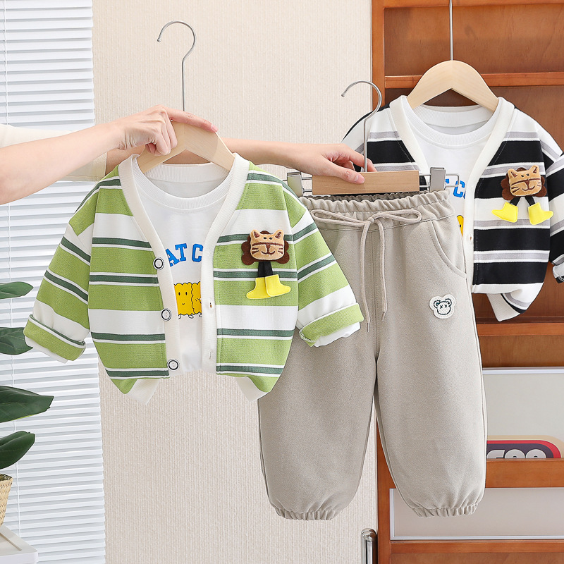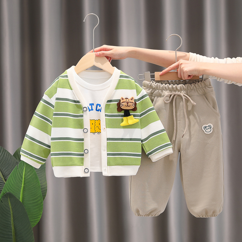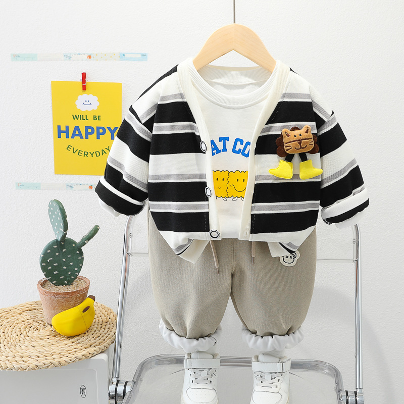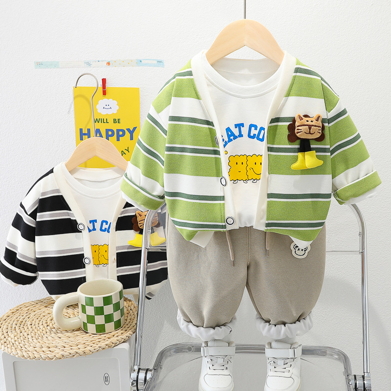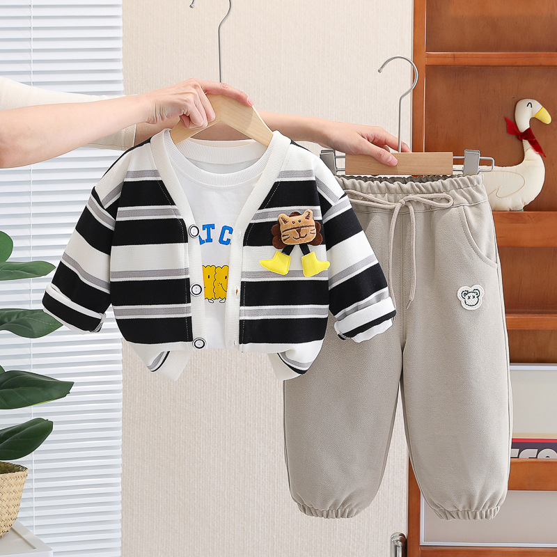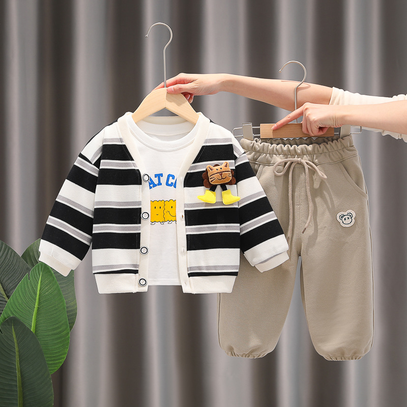 아기 소녀의 서양식 줄무늬 카디건 재킷 3 종 세트 도매 1 년 반 소년 스포츠웨어 어린이 캐주얼 바지스토어 가기