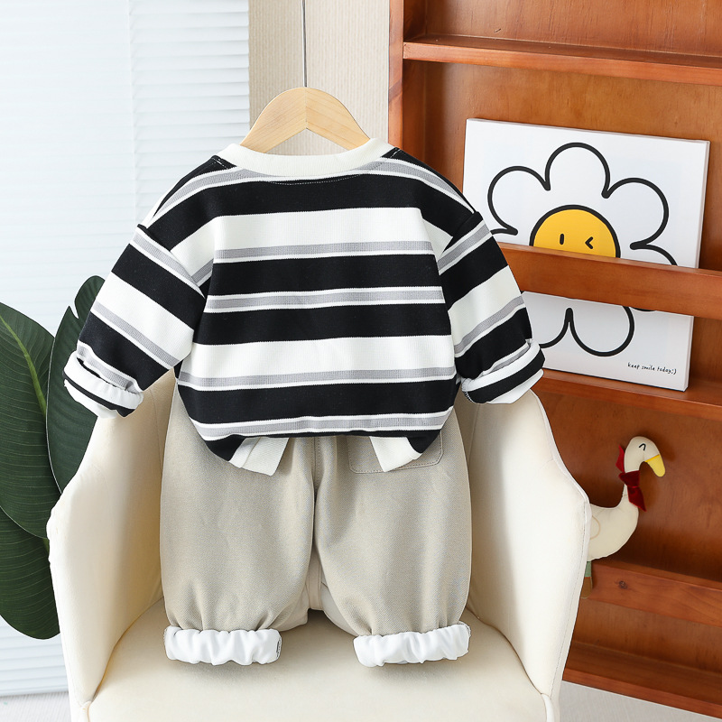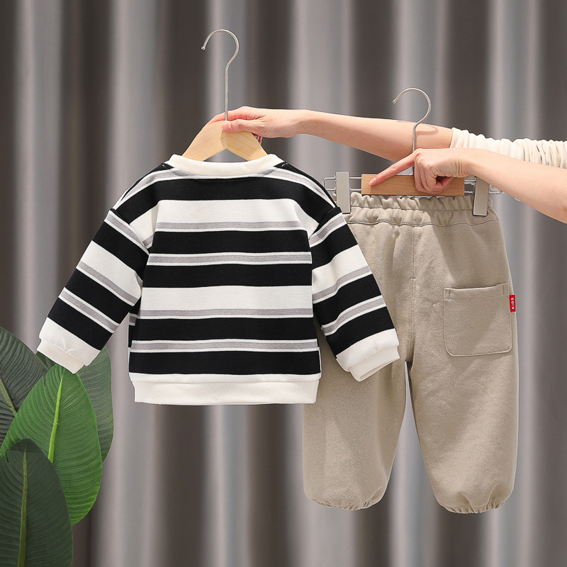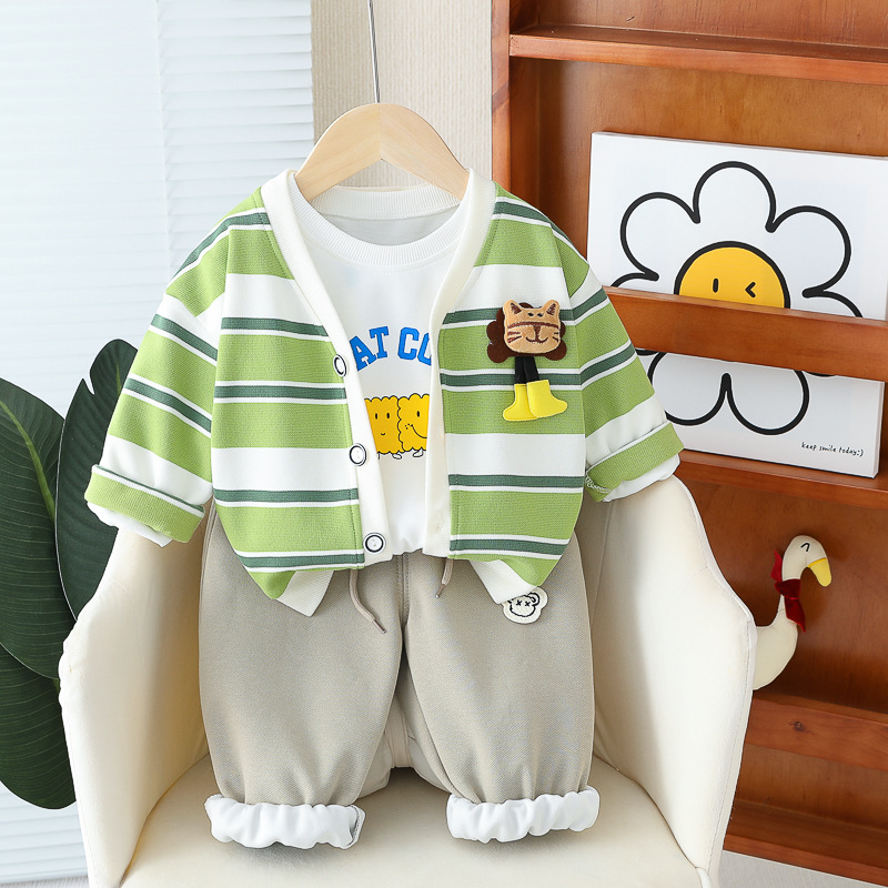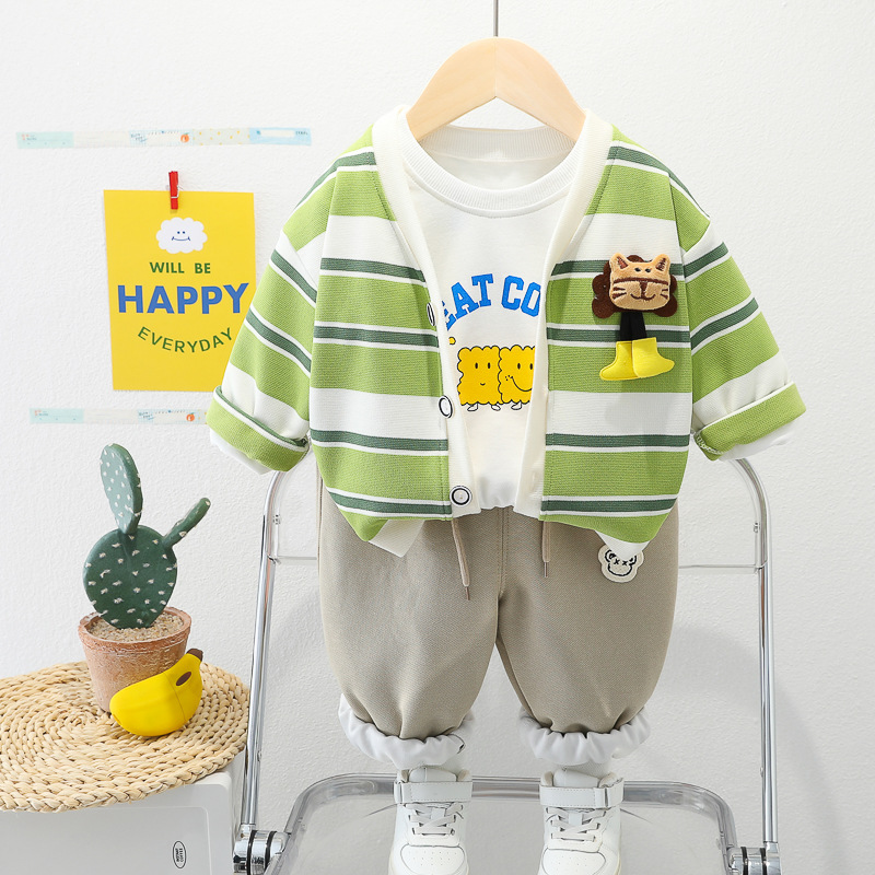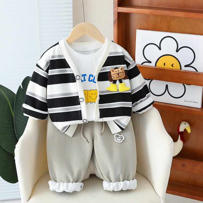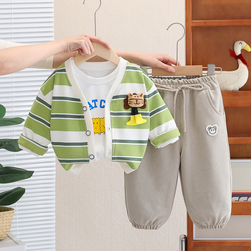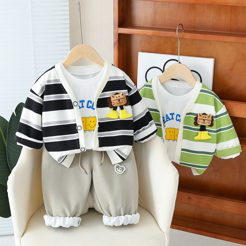아기 소녀의 서양식 줄무늬 카디건 재킷 3 종 세트 도매 1 년 반 소년 스포츠웨어 어린이 캐주얼 바지스토어 가기