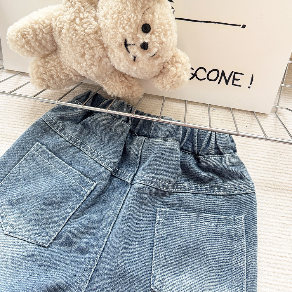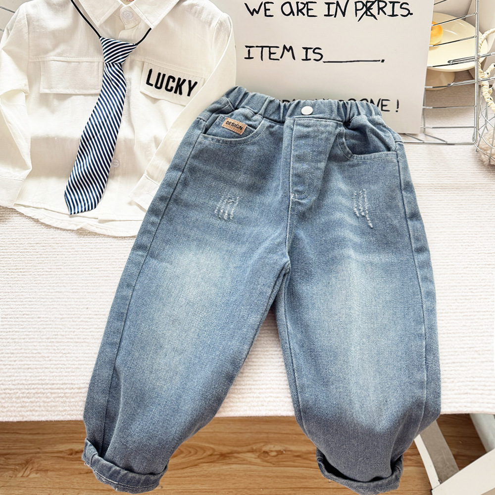 어린이 솔리드 컬러 랩 청바지 봄과 가을 새 소년의 서양식 긴 바지 아기 부드러운 캐주얼 바지