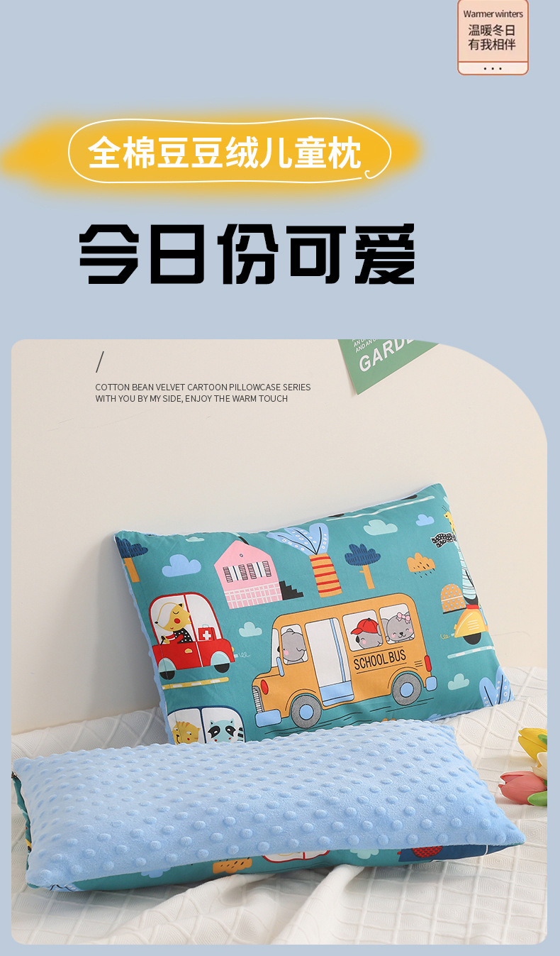 이동식 및 세척 가능한 면 어린이 베개 콩 베개 아기 베개 순수한 면 베개 낮은 베개 목 보호 AB 버전 콩 캐시미어 학생 베개