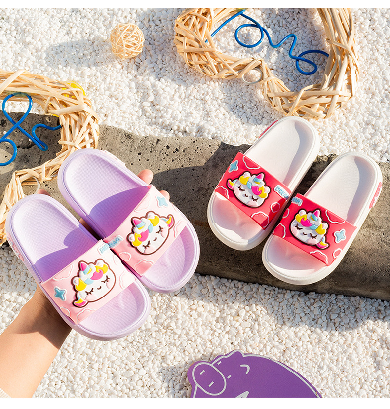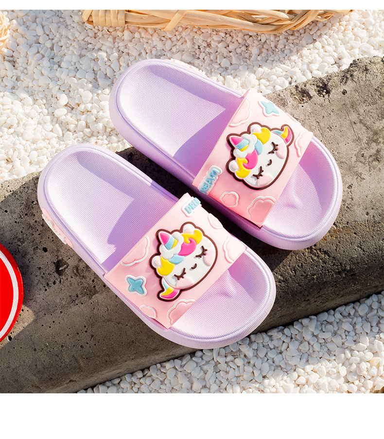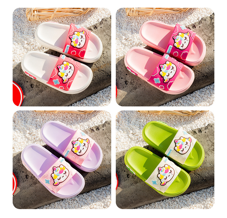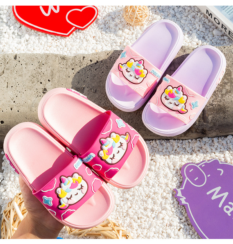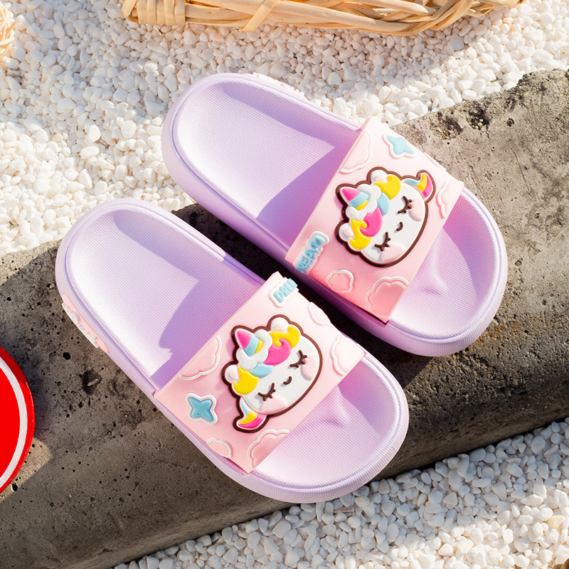 부드러운 바닥 만화 유니콘 어린이 슬리퍼 소년과 소녀 실내 목욕 슬리퍼 귀여운 야외 착용 슬리퍼