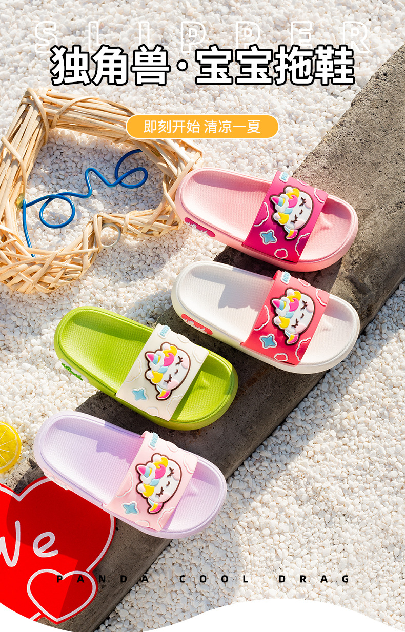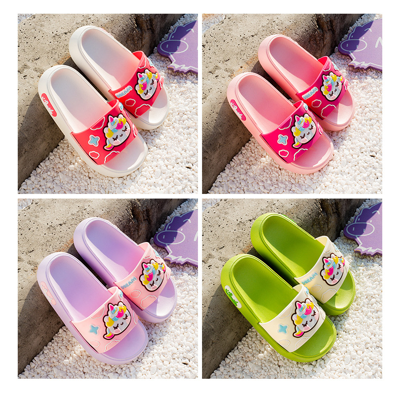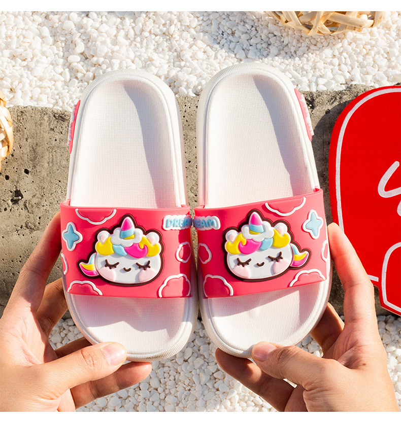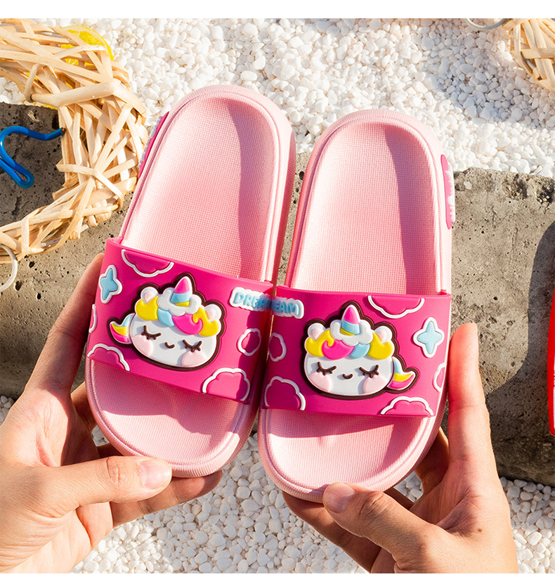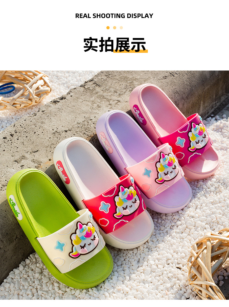 부드러운 바닥 만화 유니콘 어린이 슬리퍼 소년과 소녀 실내 목욕 슬리퍼 귀여운 야외 착용 슬리퍼