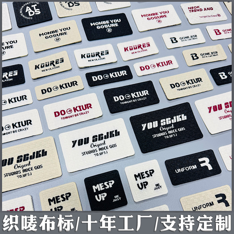 직조 마크 천 라벨 10 년 공장 폴리 에스테르 고밀도 음영 메인 마크 상표 레이저 백킹 종이 의류 장식 라벨스토어 가기