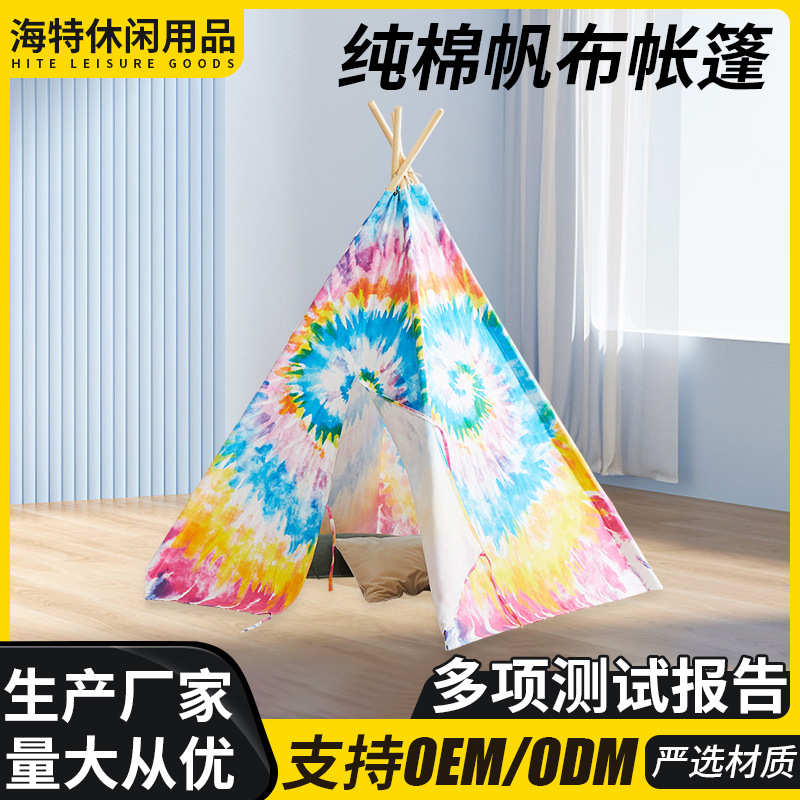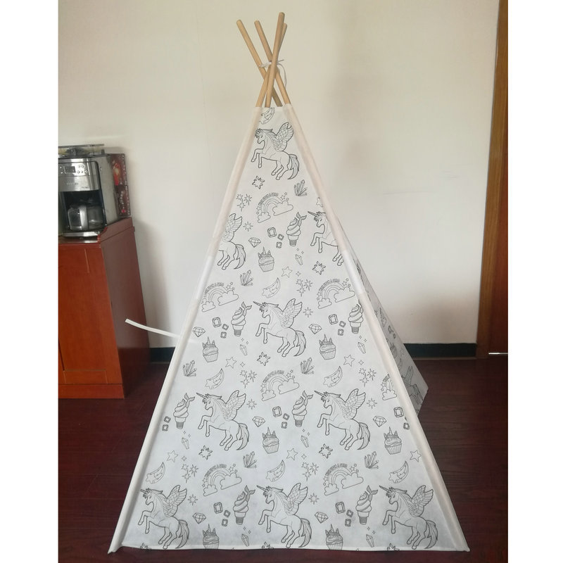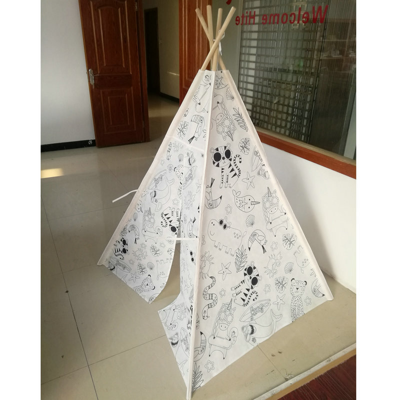 순수 코튼 캔버스 텐트 색칠 낙서 인도 나무 막대 텐트 유치원 야외 실내 게임 하우스 제조 업체