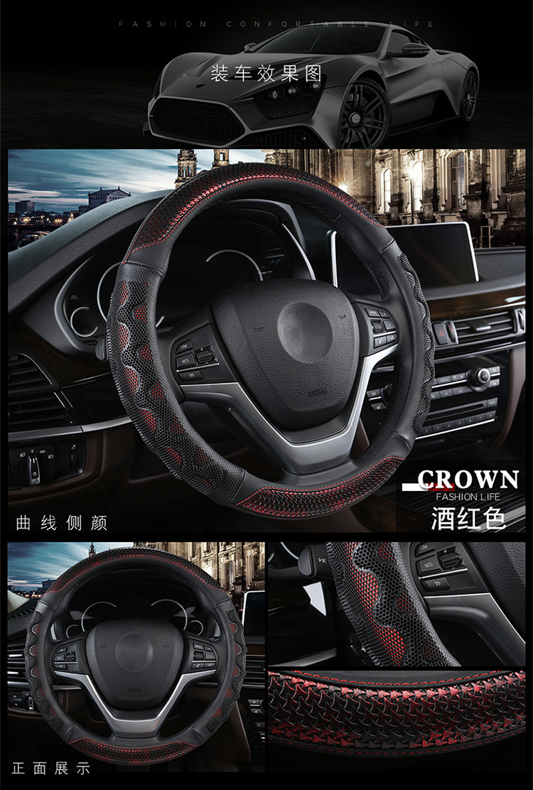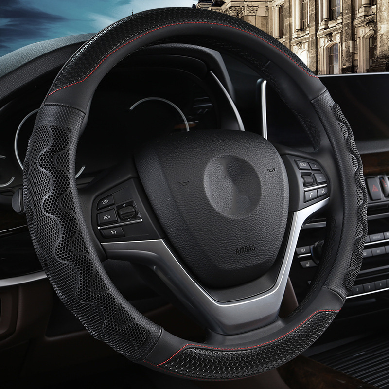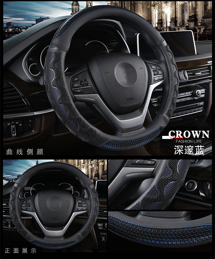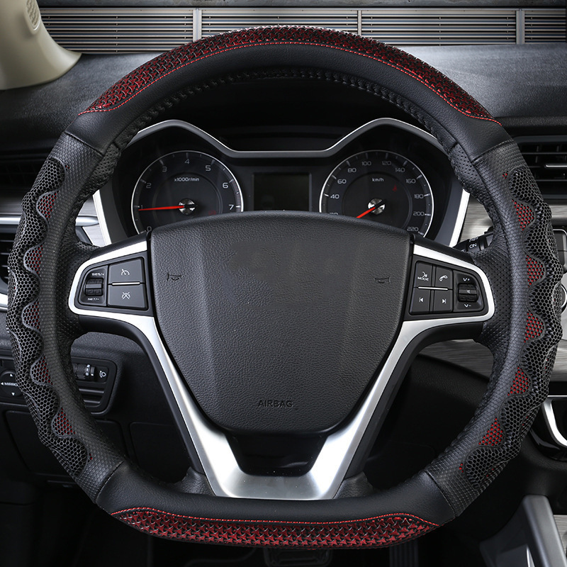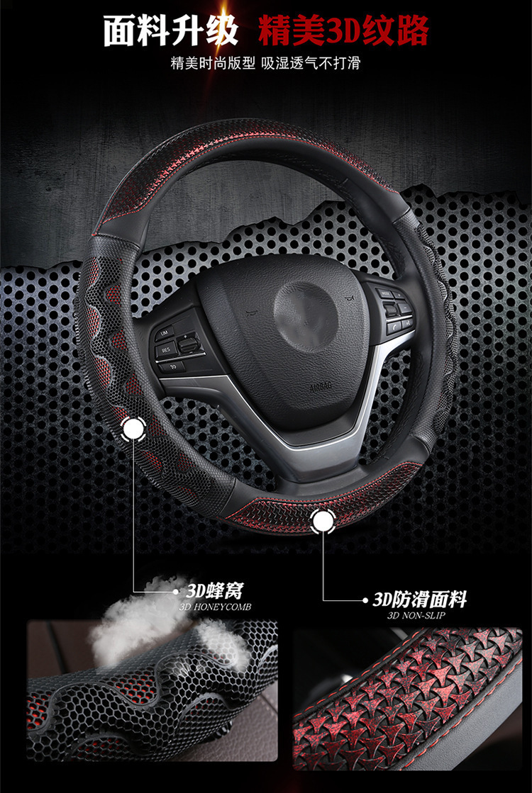 자동차 스티어링 휠 커버 남녀 여름 3D 벌집 아이스 실크 미끄럼 방지 땀 흡수성 통기성 사계절 범용 자동차 핸들 커버