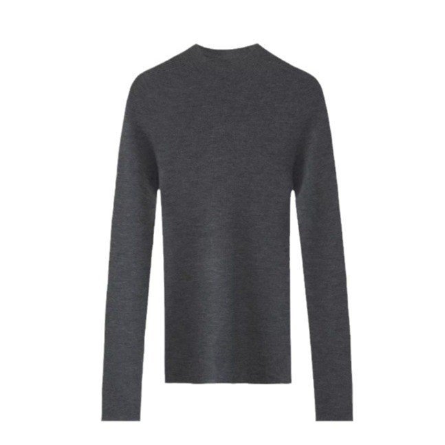 [Yangzi 원사] 심리스 100% 울 스웨터, 하프 터틀넥 스웨터, 긴팔 바닥 미드 칼라, 가을 겨울 여성용 다용도 탑