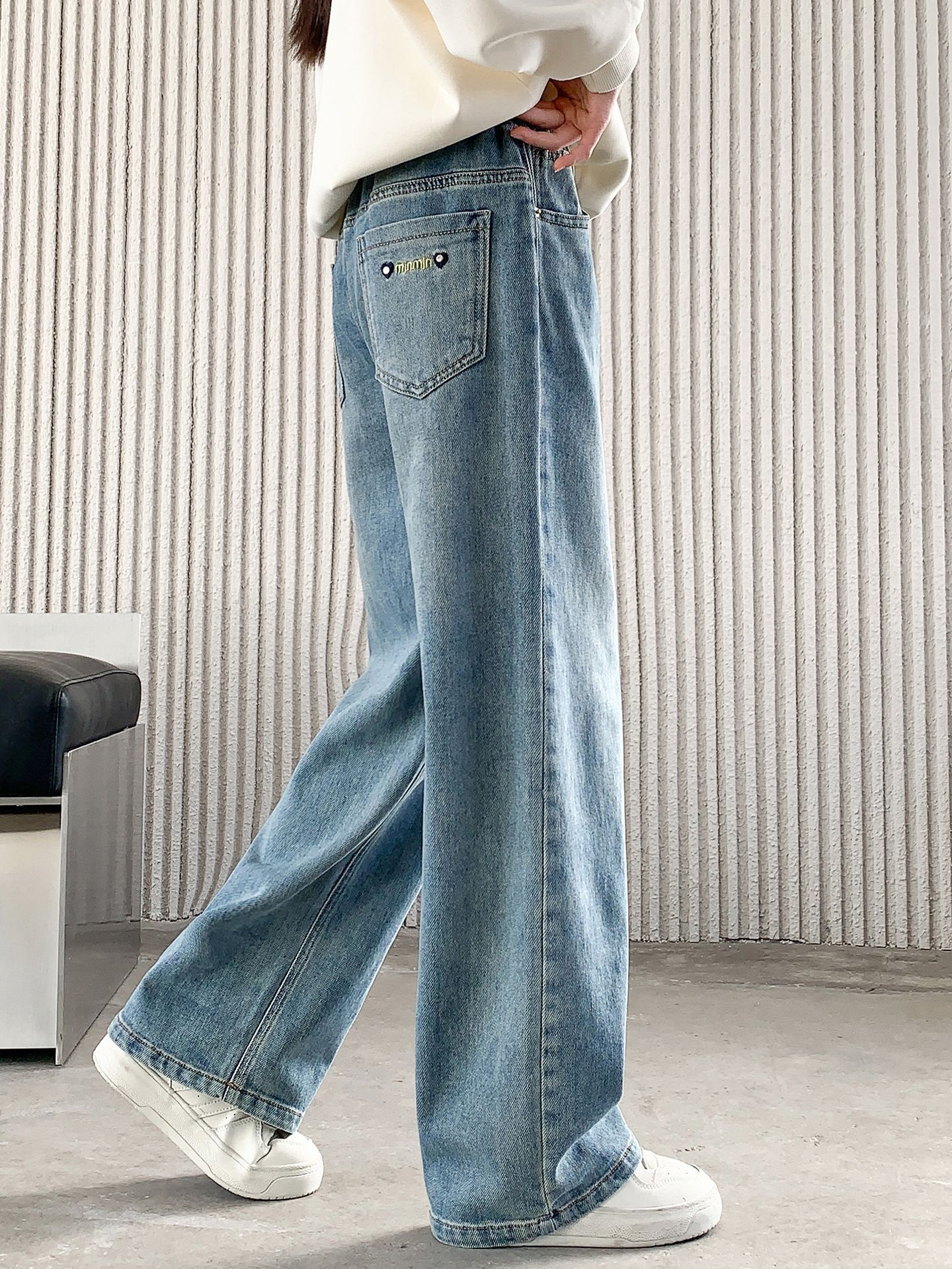여아 바지 봄, 가을 중대형 아동용 스트레이트 청바지 2025 가을 의류 아동 및 청소년 여아 캐주얼 바지스토어 가기