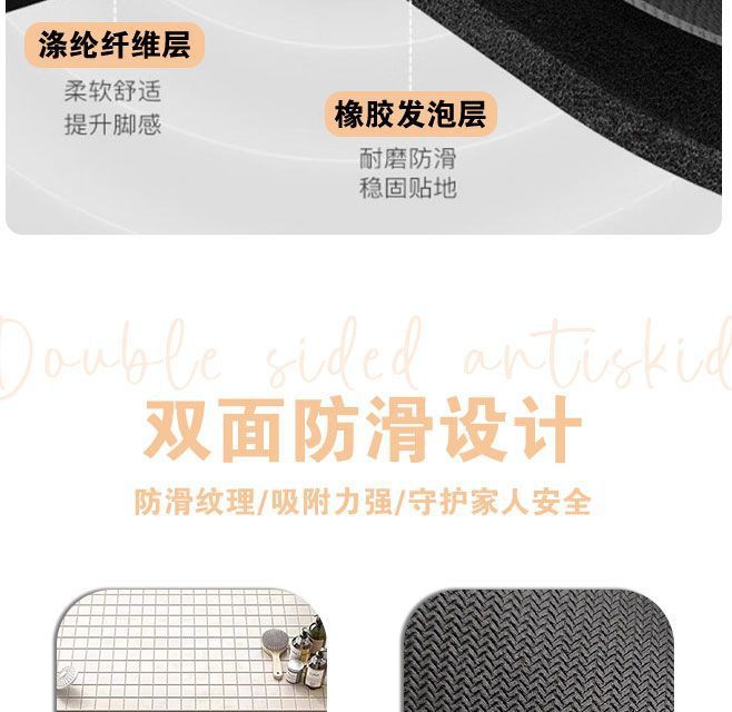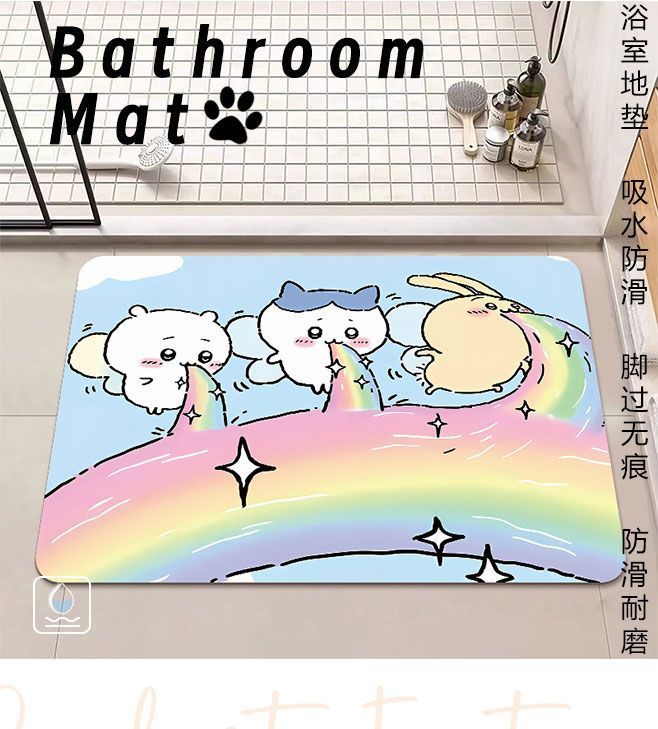 吉伊卡哇洗手间门口防滑速干耐脏地毯卫生间地垫硅藻泥浴室脚垫子