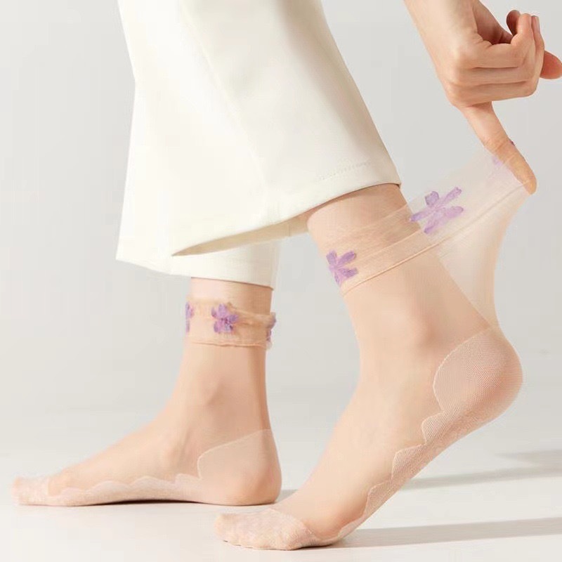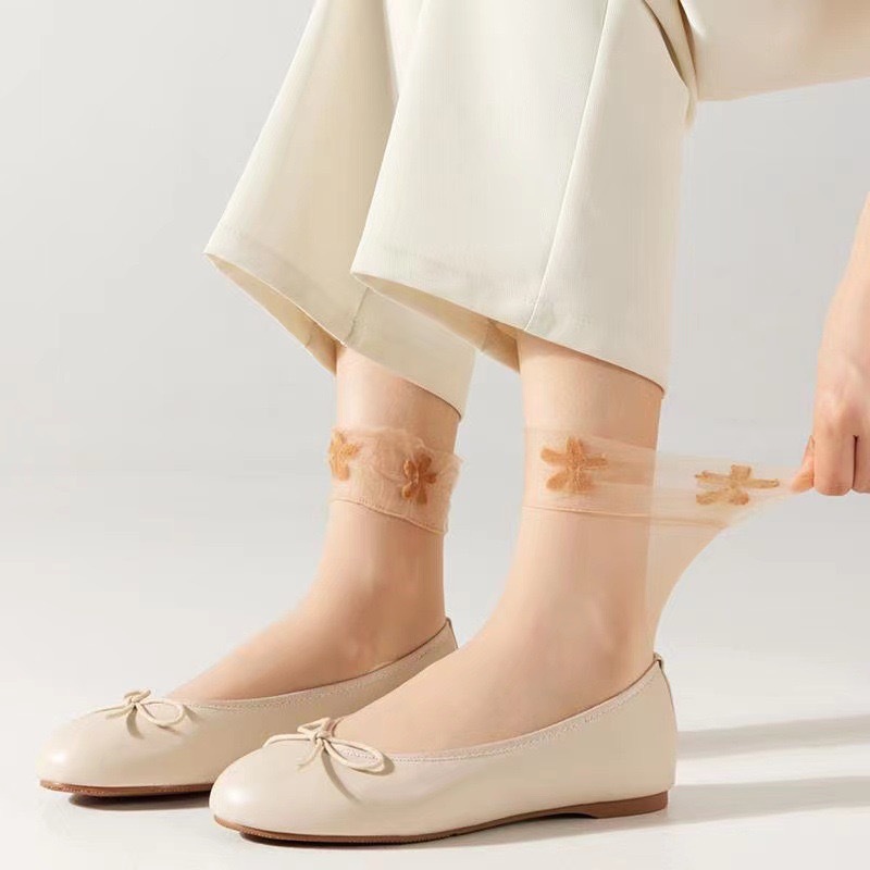 레이스 여성 네잎 클로버 스타킹 느슨한 양말 산후 양말 여성 스타킹 짧은 여름 얇은 살색 양말 도매