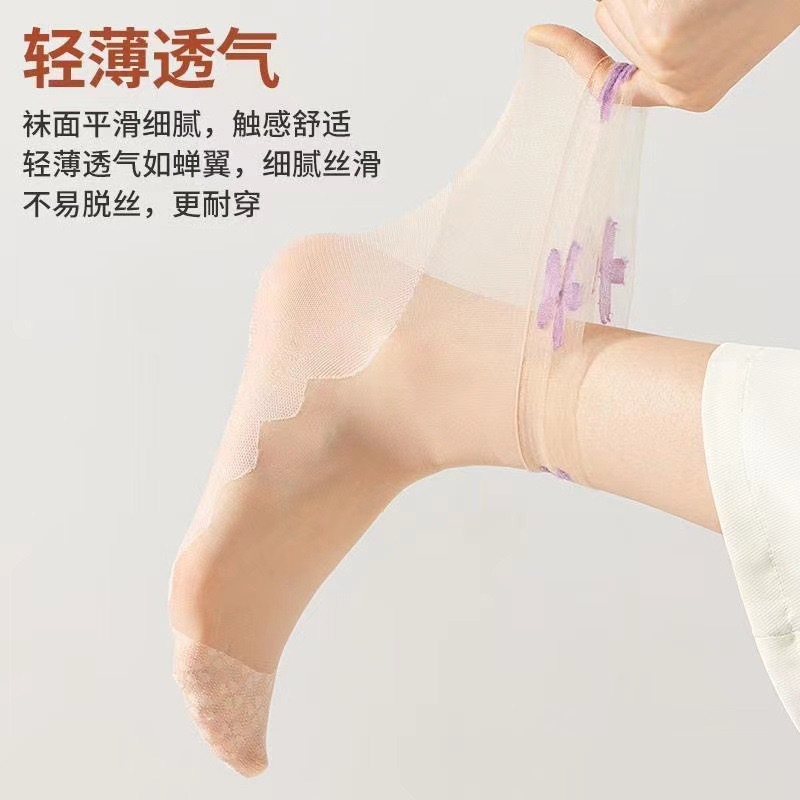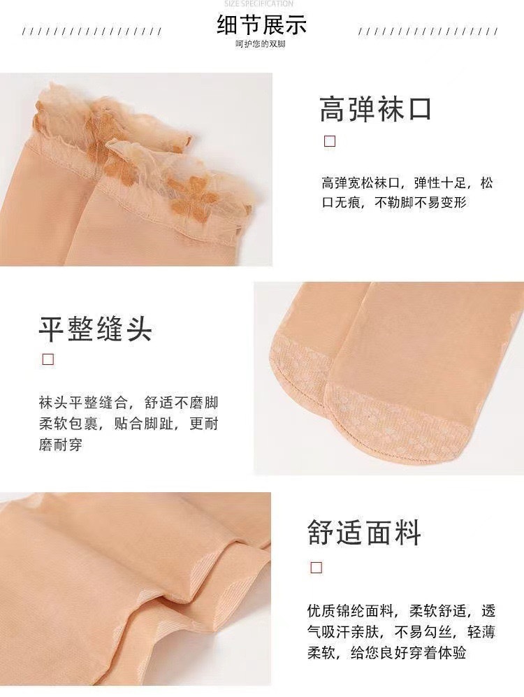 레이스 여성 네잎 클로버 스타킹 느슨한 양말 산후 양말 여성 스타킹 짧은 여름 얇은 살색 양말 도매스토어 가기