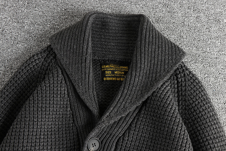 아미 카키 레트로 울 블렌드 스웨터 스웨터 남자 쇼크 칼라 터프 가이 트렌디 캐주얼 카디건 재킷