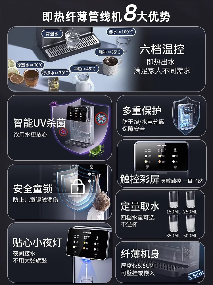 오크스 AUX-GX-D 물탱크 없는 파이프라인 정수기 벽걸이형 가정용 정수기 즉시 가열 직수형 정수기