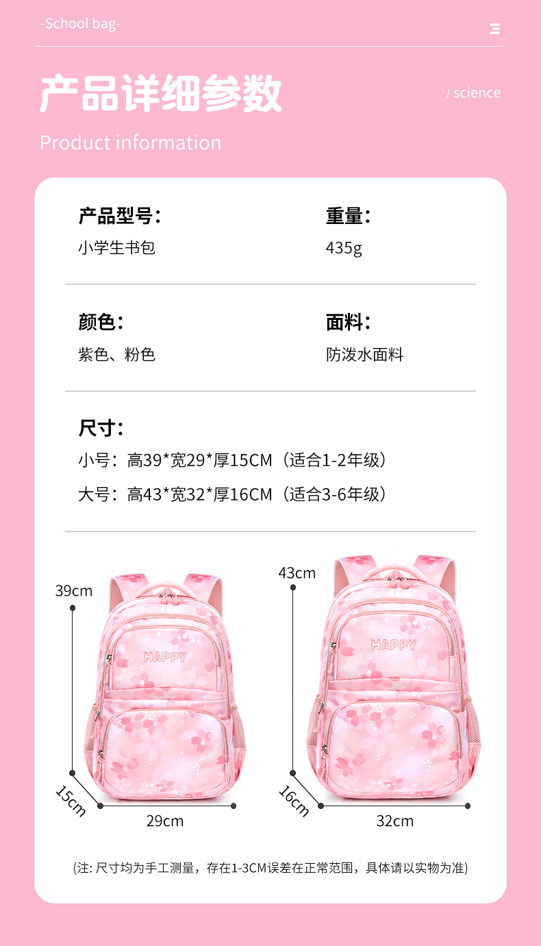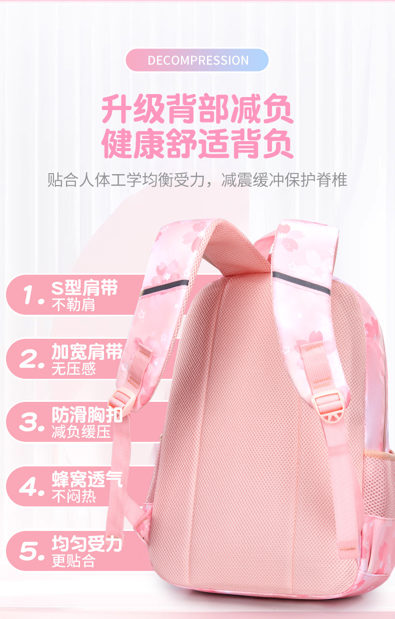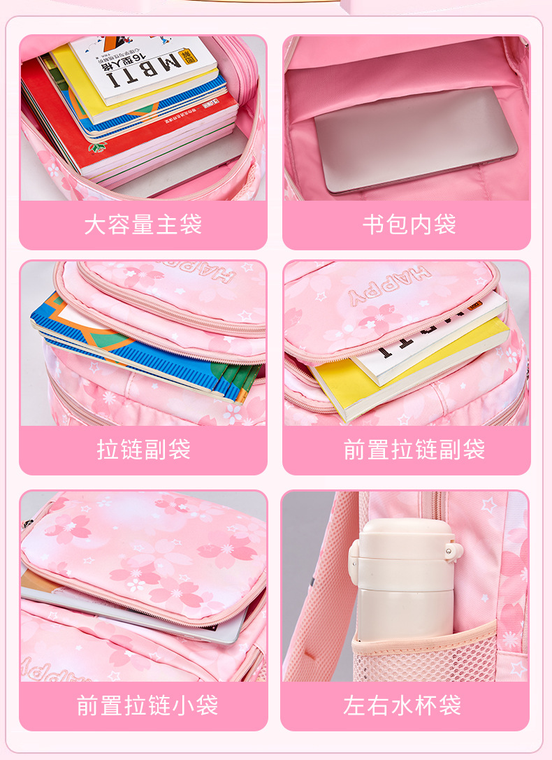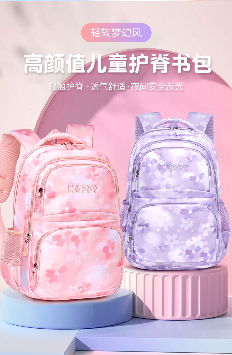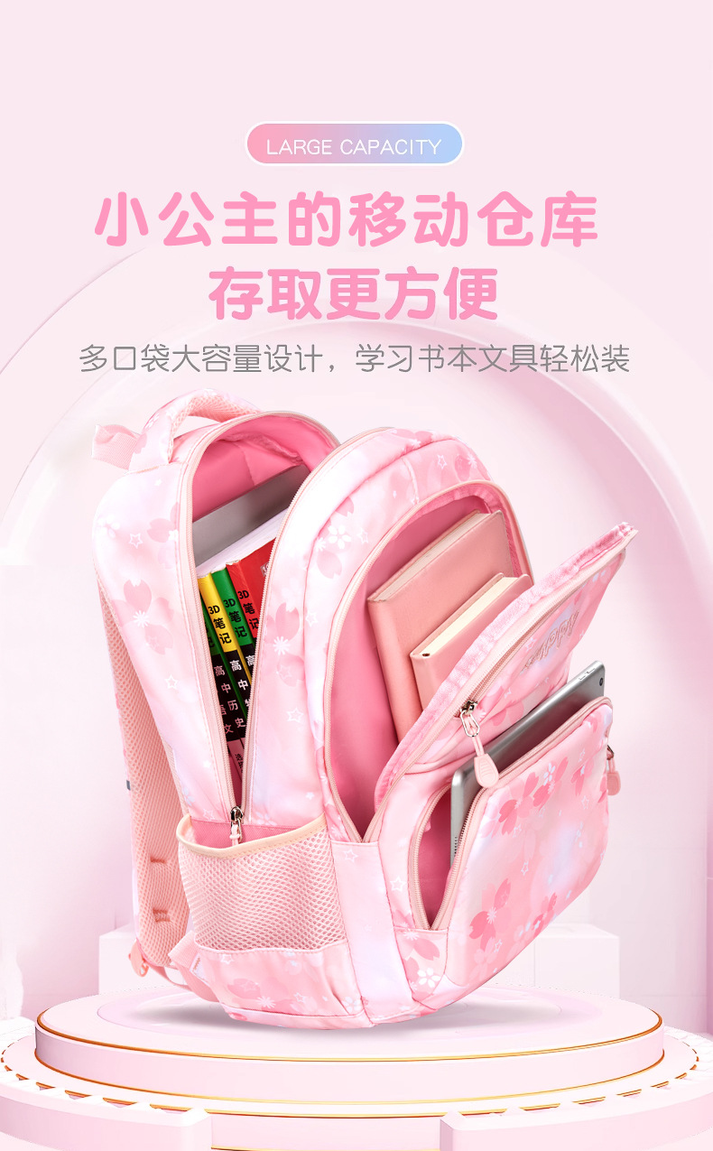 초등학교 여학생을위한 새로운 스쿨백 1-3-6 학년 배낭 한국식 빛과 귀여운 공주 멀티 컴파트먼트 배낭스토어 가기