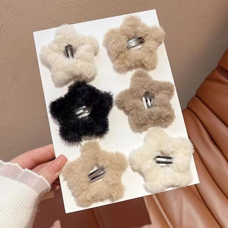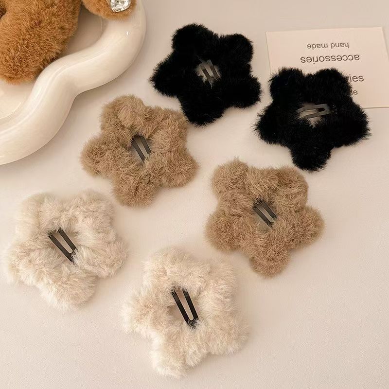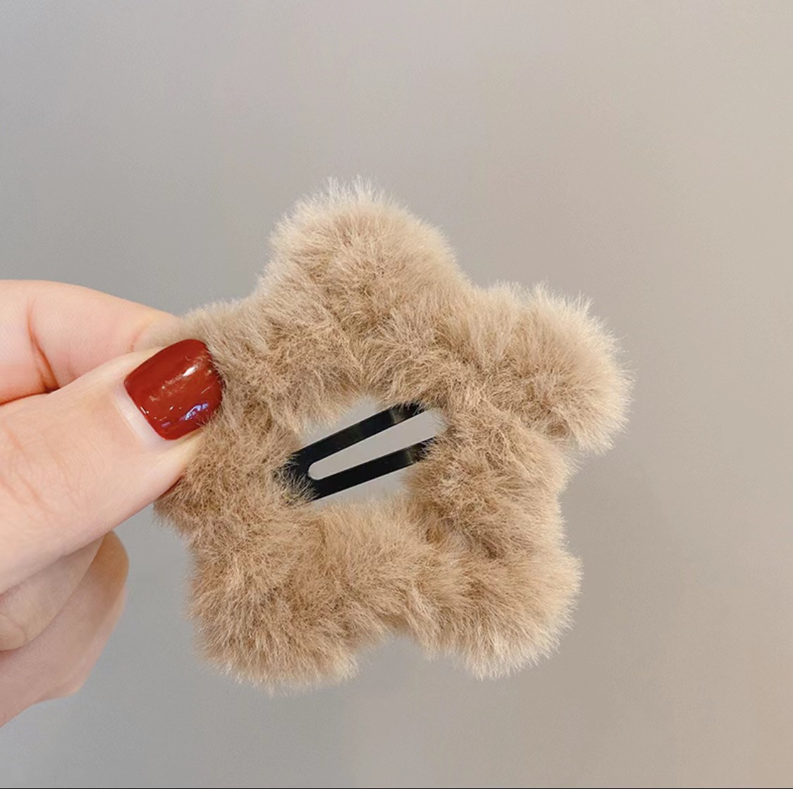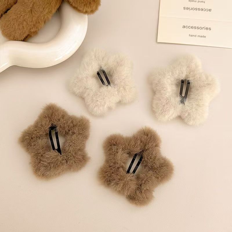 털이 많은 라이스 커피 간단한 스타 BB 클립 소녀 가을과 겨울 봉제 다섯개 별 사이드 클립 귀여운 헤어 액세서리 헤어핀스토어 가기