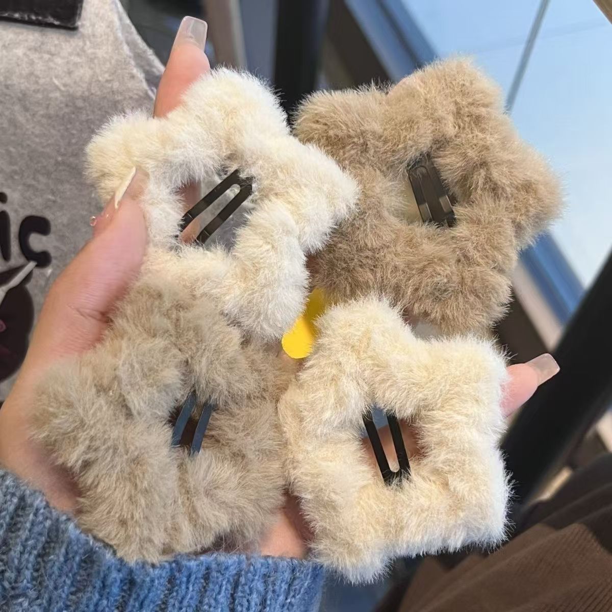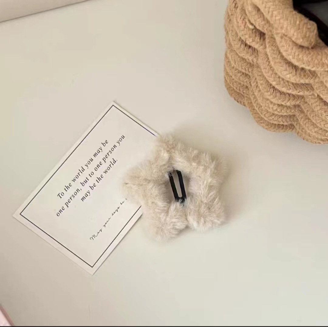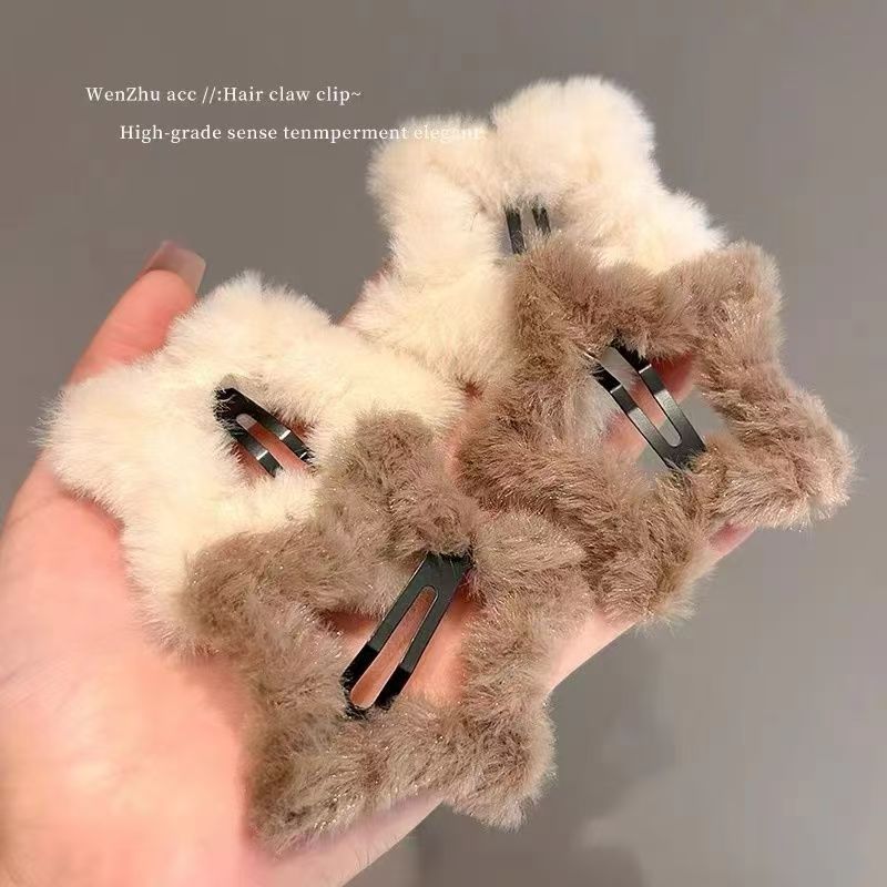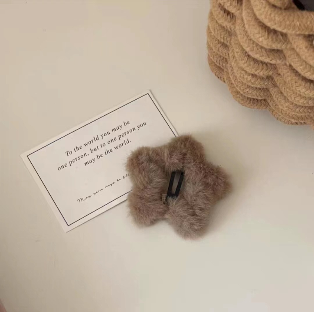 털이 많은 라이스 커피 간단한 스타 BB 클립 소녀 가을과 겨울 봉제 다섯개 별 사이드 클립 귀여운 헤어 액세서리 헤어핀스토어 가기