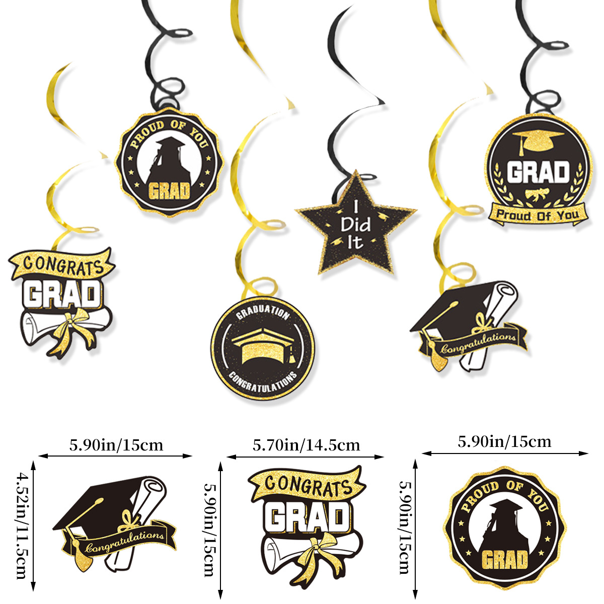包装:OPP袋装 6个装毕业螺旋18*18.5cm,毕业气球14.5*12.5cm ,蜂窝摆件4个17*18.5cm,拉旗13.5*22cm