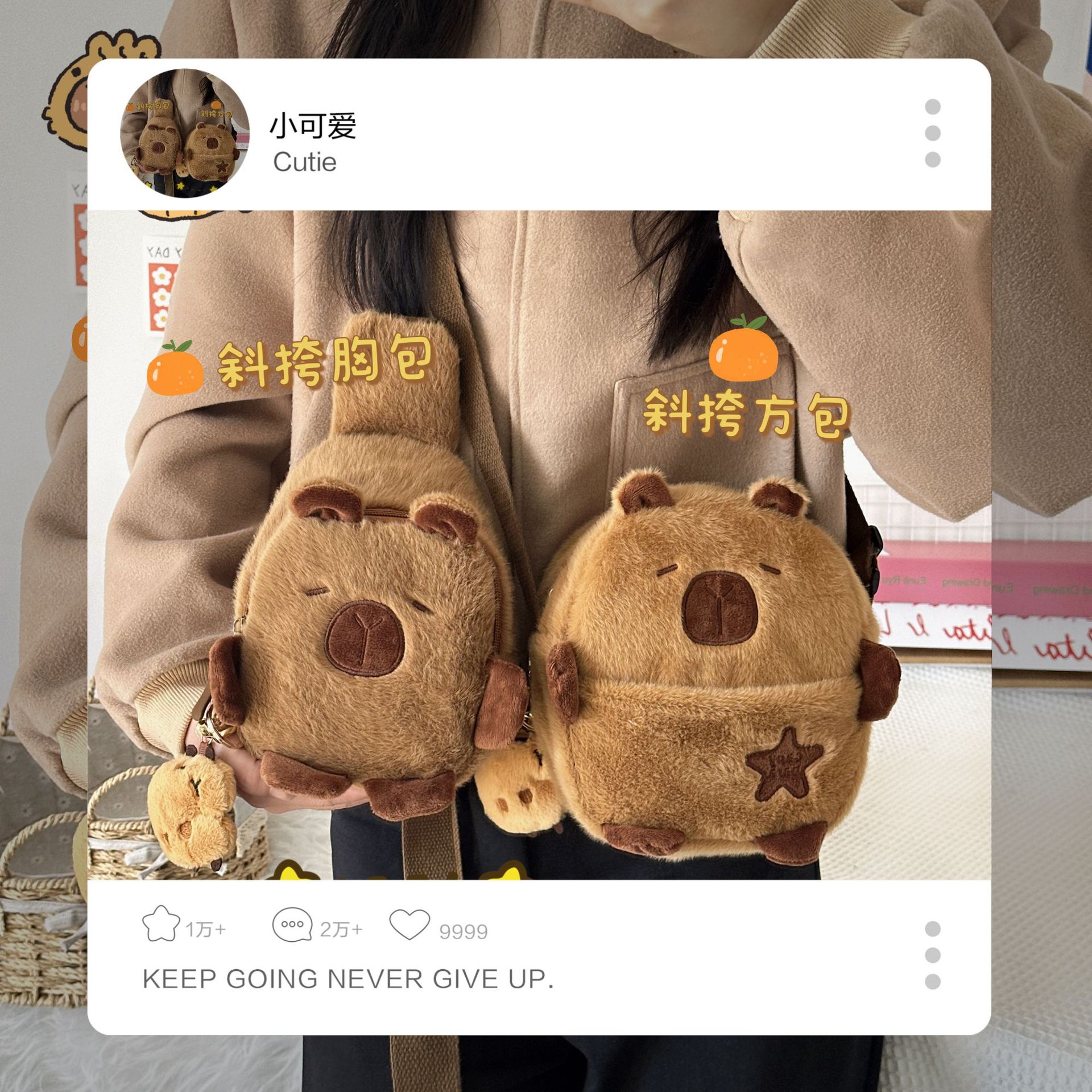 귀여운 플러시 물 기니피그 작은 어깨 가방 만화 귀여운 카피라라 보관 휴대 전화 가방 소녀 크로스 바디 작은 가슴 가방스토어 가기