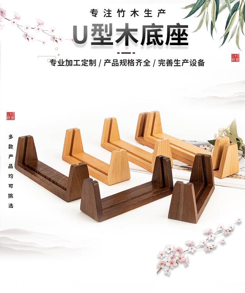 U 자형 단단한 나무베이스 나무 장식품 공예 카드 나무 스탠드 너도밤 나무 달력 기본 호두 사진 프레임스토어 가기