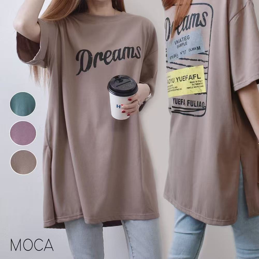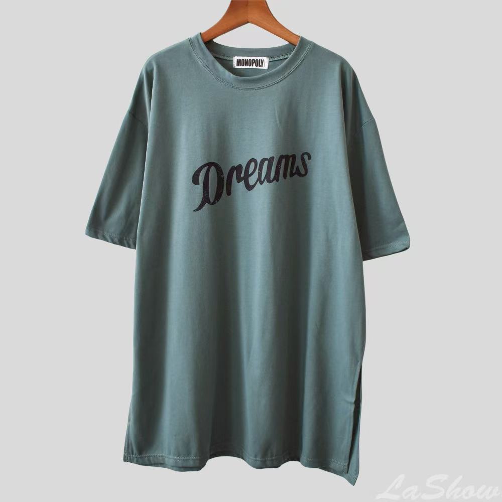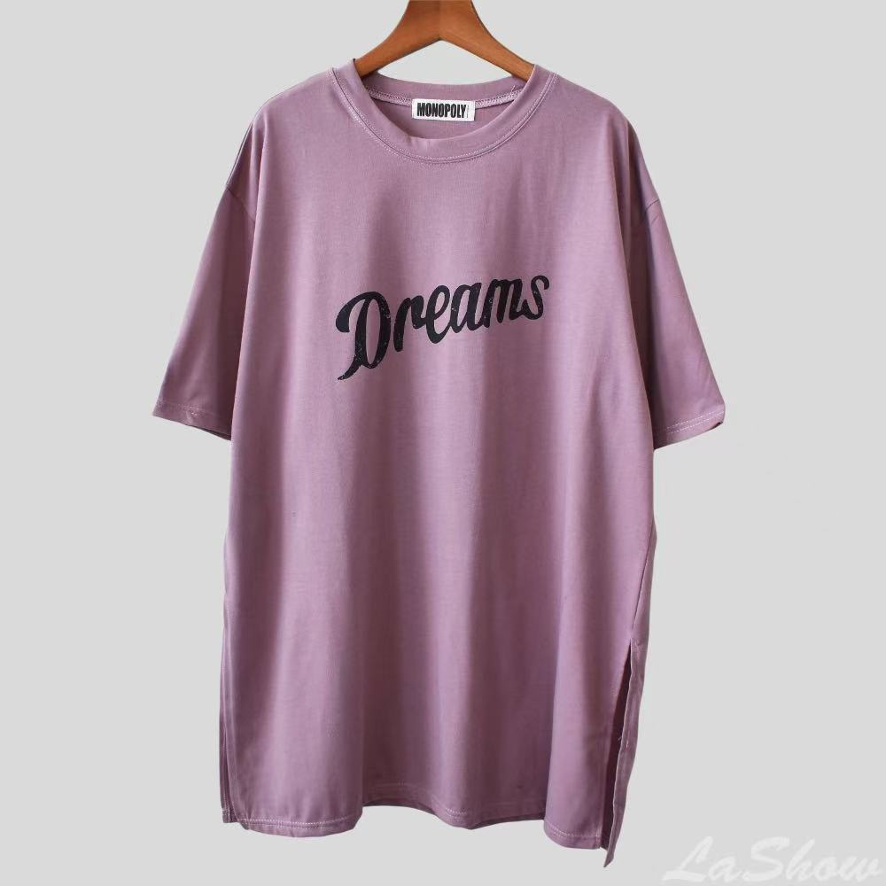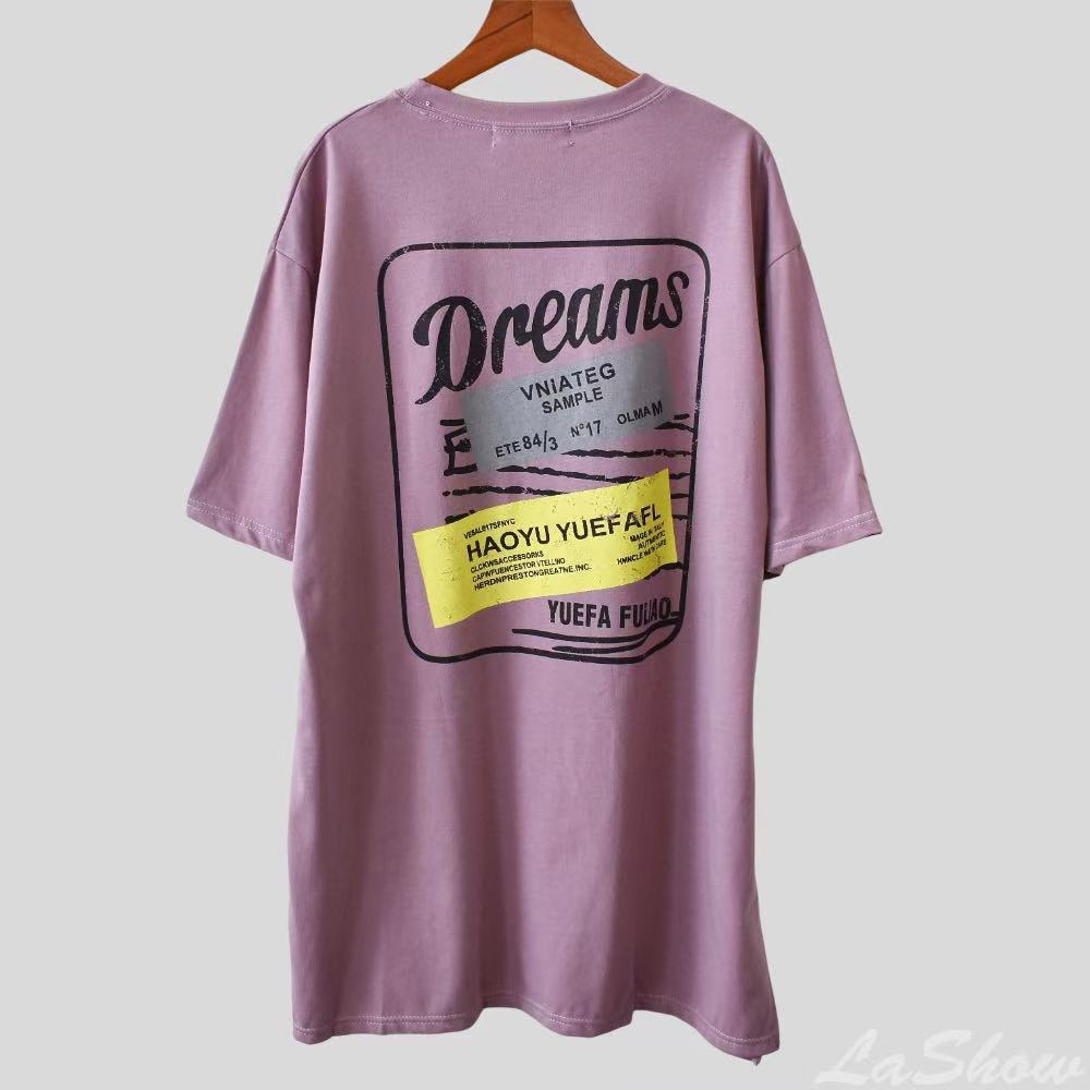 2025 여름 새로운 느슨한 플러스 사이즈 올 매치 여자 탑 인쇄 중간 길이의 유행 티셔츠 나이 감소 슬리밍