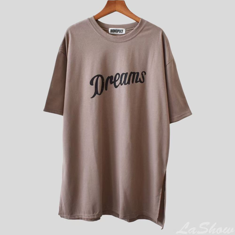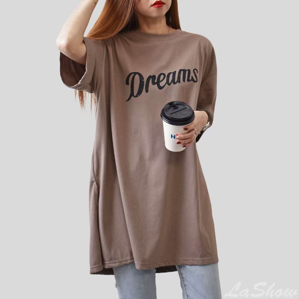 2025 여름 새로운 느슨한 플러스 사이즈 올 매치 여자 탑 인쇄 중간 길이의 유행 티셔츠 나이 감소 슬리밍스토어 가기