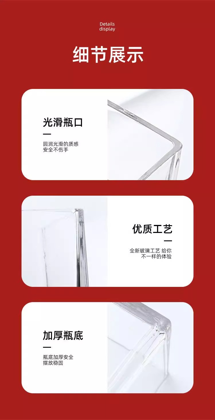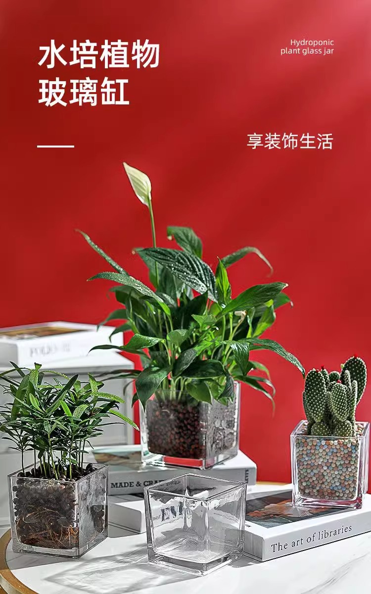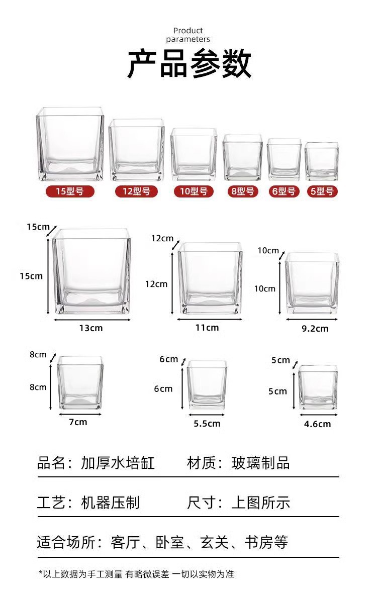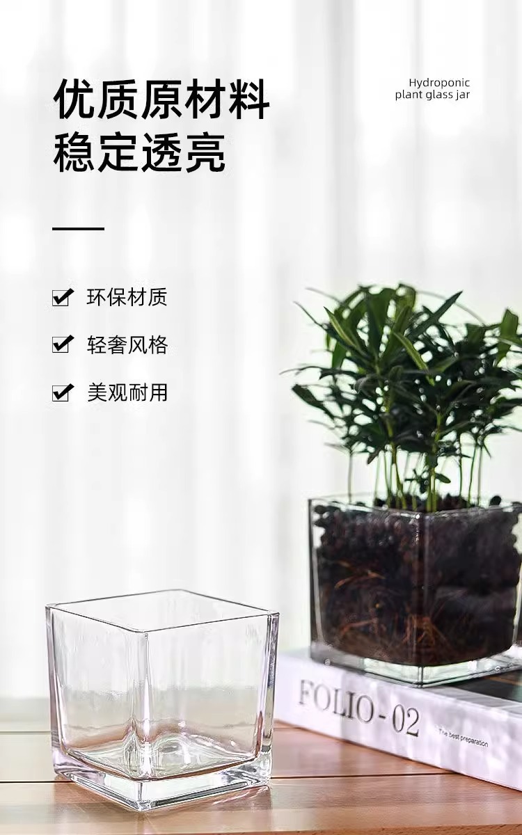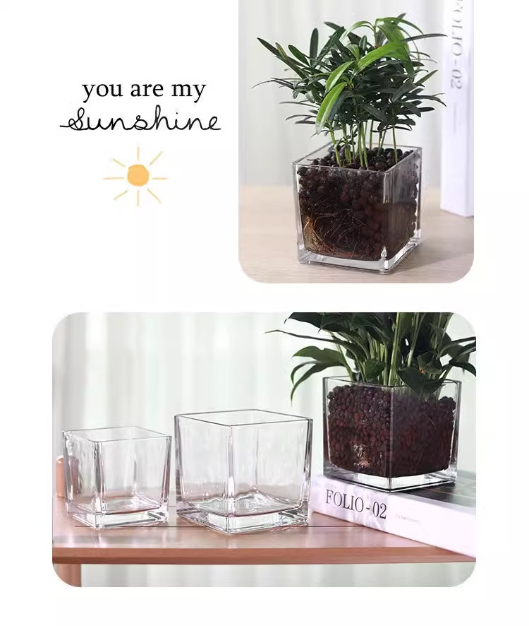 간단한 수경 유리 꽃병 투명한 사각 실린더 물 키우기 백합 튤립 수선화 화이트 팜 용품 거실 작은 꽃 냄비