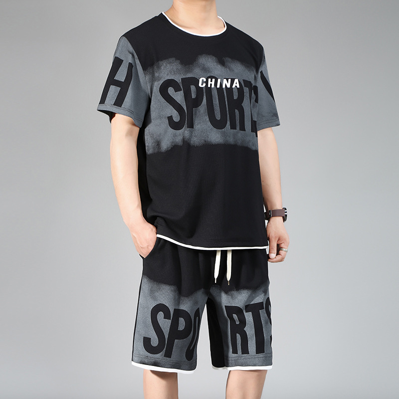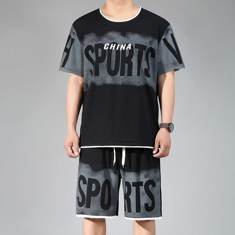 플러스 대형 반팔 스포츠 세트 남자 여름 십대 잘 생긴 캐주얼 느슨한 반바지 세트