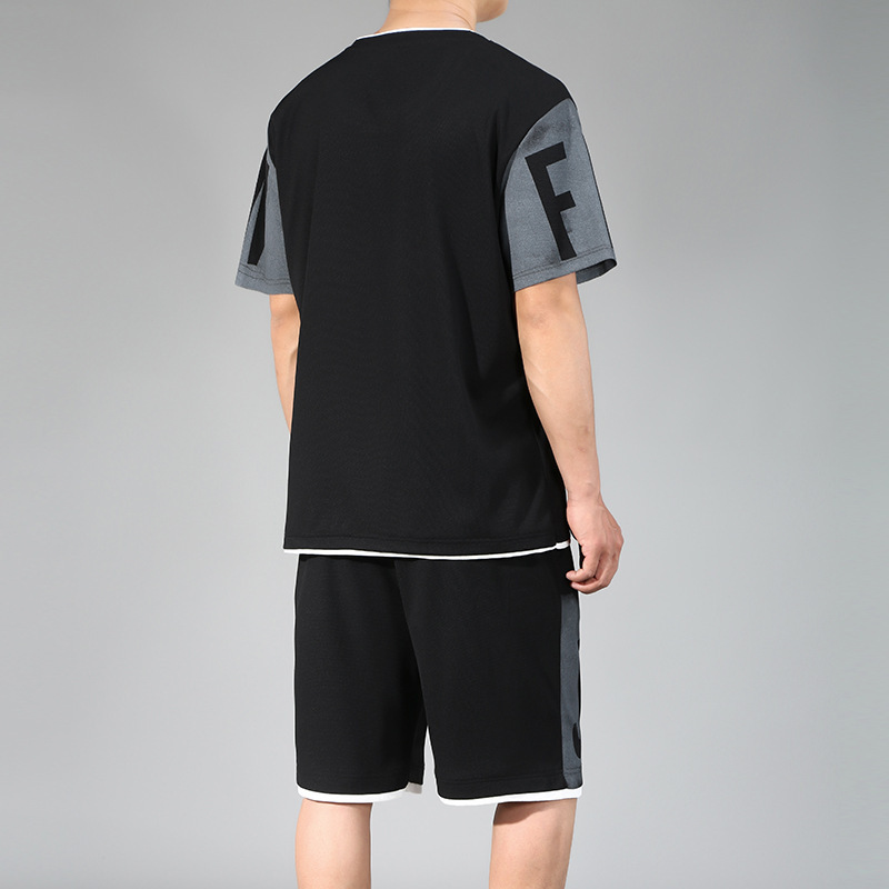 加肥加大码短袖运动套装男士夏季青少年帅气搭配休闲宽松短裤一套