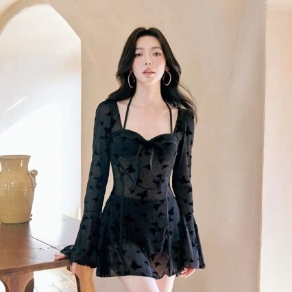 [검은 나비] 새로운 순수한 욕망 감성 스커트 스타일 원피스 수영복 배꼽 덮음 온천 해변 휴일 수영복 관점스토어 가기