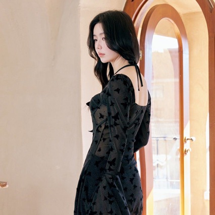 [검은 나비] 새로운 순수한 욕망 감성 스커트 스타일 원피스 수영복 배꼽 덮음 온천 해변 휴일 수영복 관점