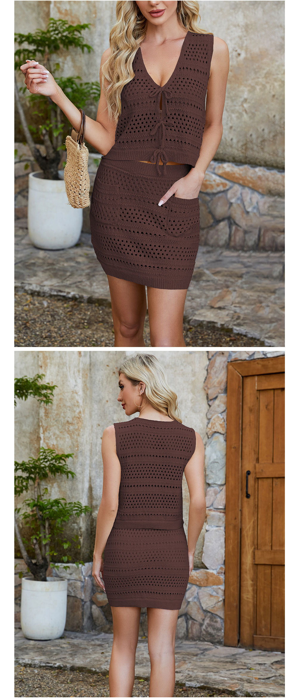 2026 신상 아마존 유럽 및 미국 여성복 여름 세트 끈 조끼 인기 모델 비치 브이넥 캐주얼 니트