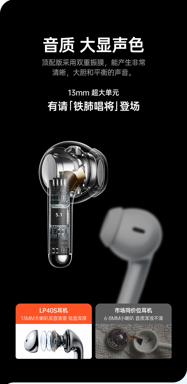 씽크 플러스 LP40 프로 TWS 무선 블루투스 헤드셋 긴 수명 소음 감소 스포츠 헤드셋스토어 가기